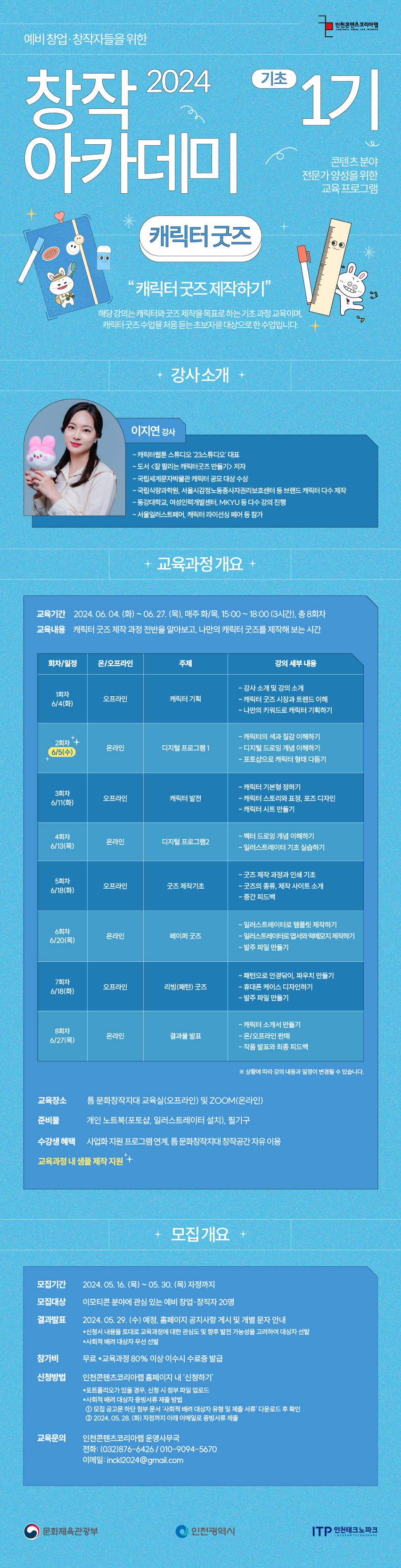 ▶ 교육문의: 인천콘텐츠코리아랩 운영사무국 032-876-6426 / 010-9094-5670 inckl2024@gmail.com