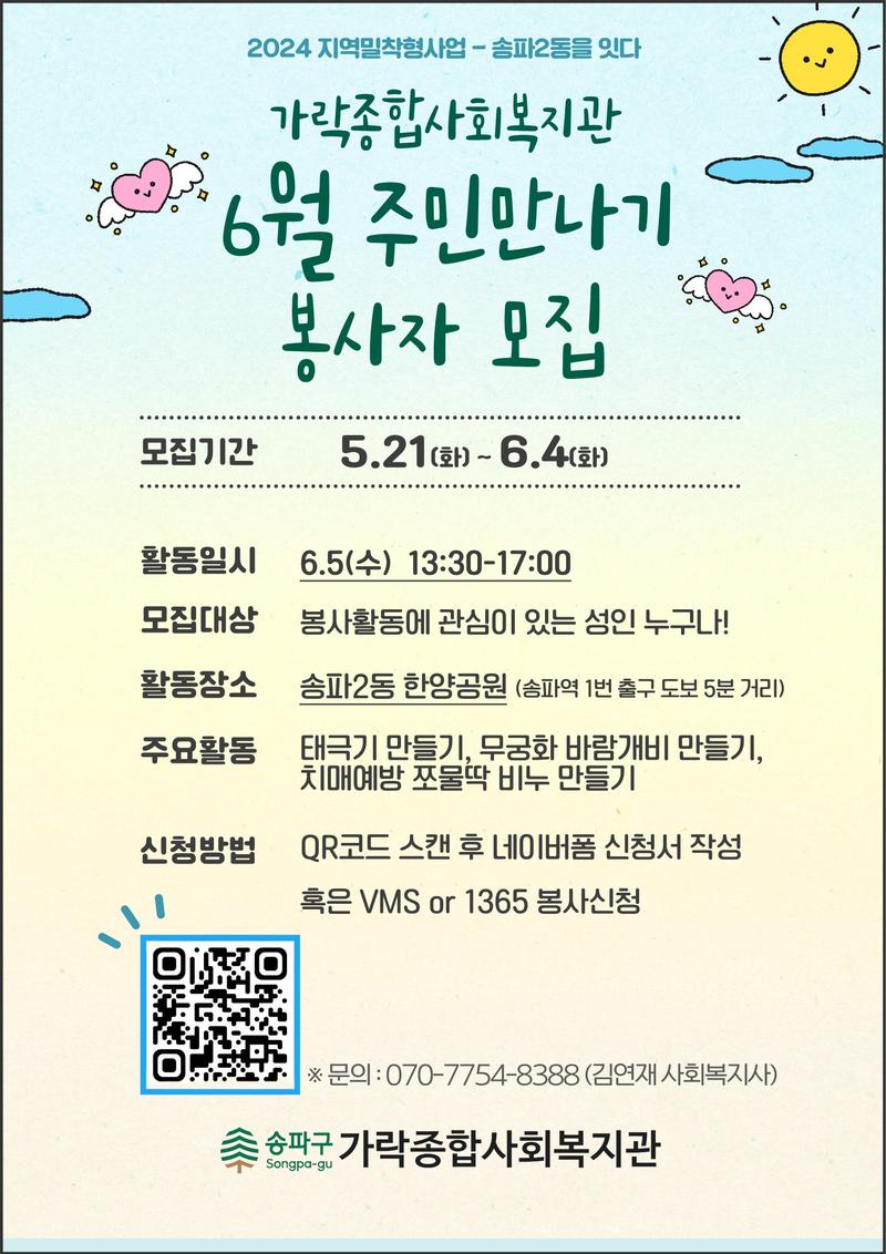 ★가락종합사회복지관 송파2동 주민만나기 봉사자 모집★