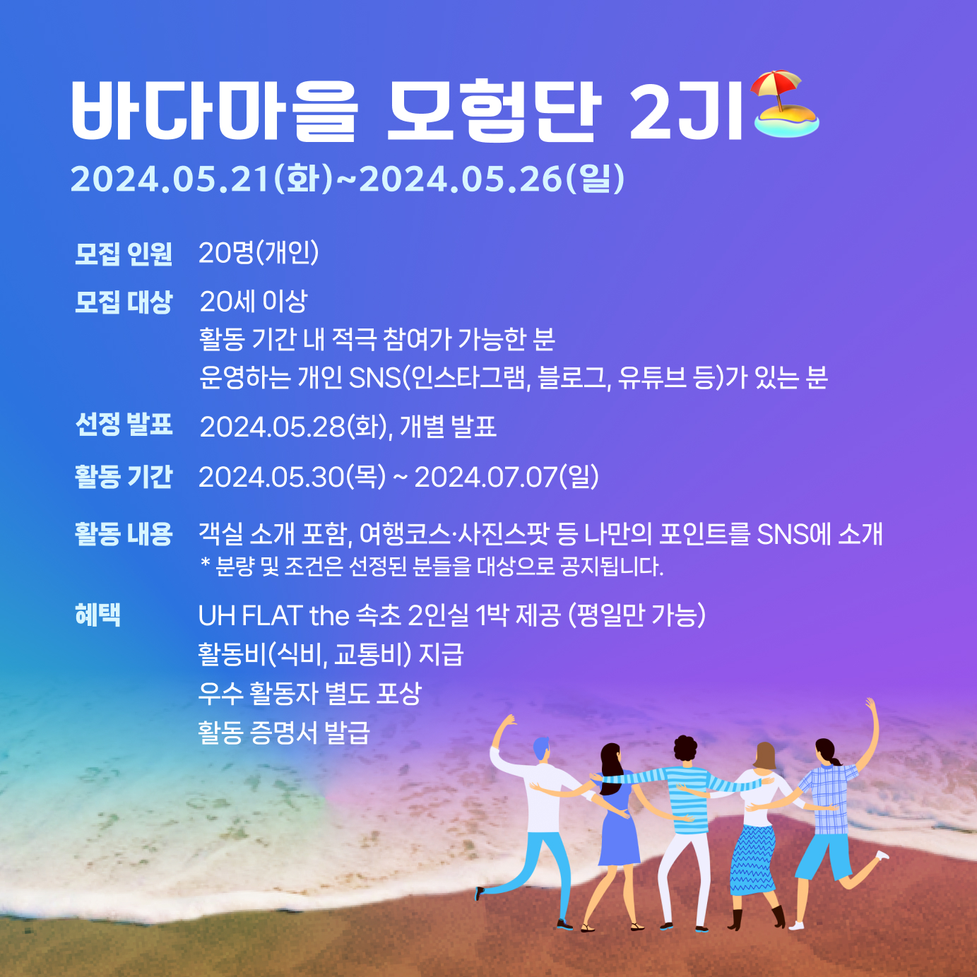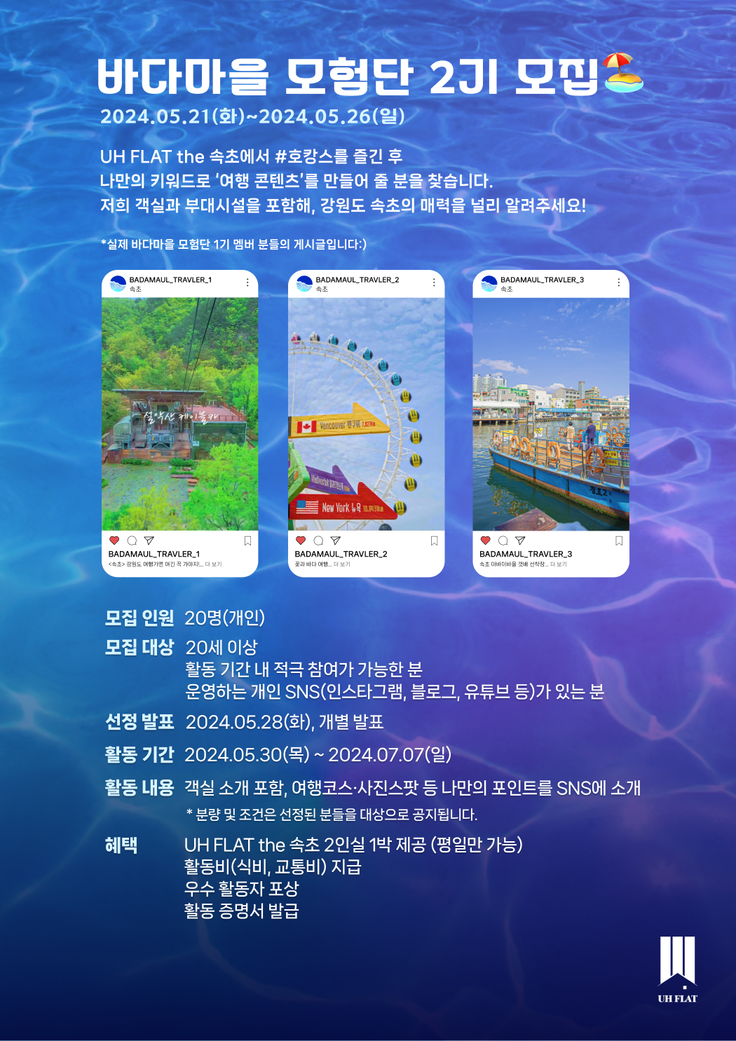 UH FLAT the 속초에서 호캉스를 즐긴 후 나만의 키워드로 여행 콘텐츠를 만들어 줄 분을 찾습니다.
