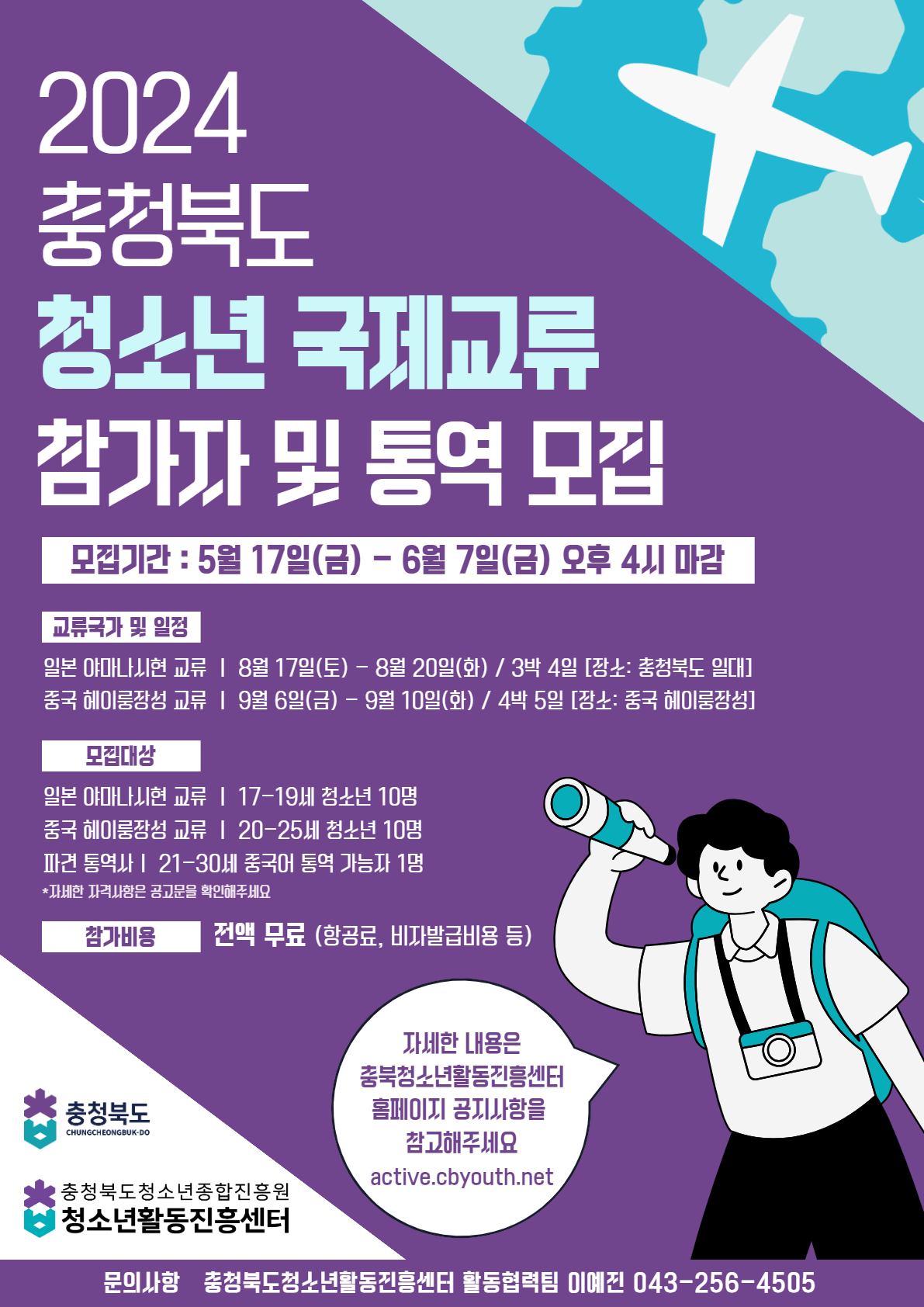 - 교류기간: 8. 17.(토)~20.(화) (3박 4일간)