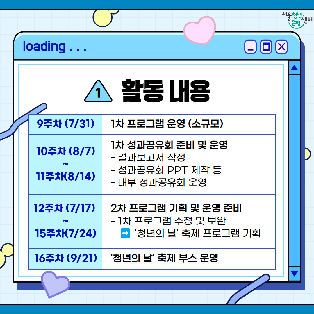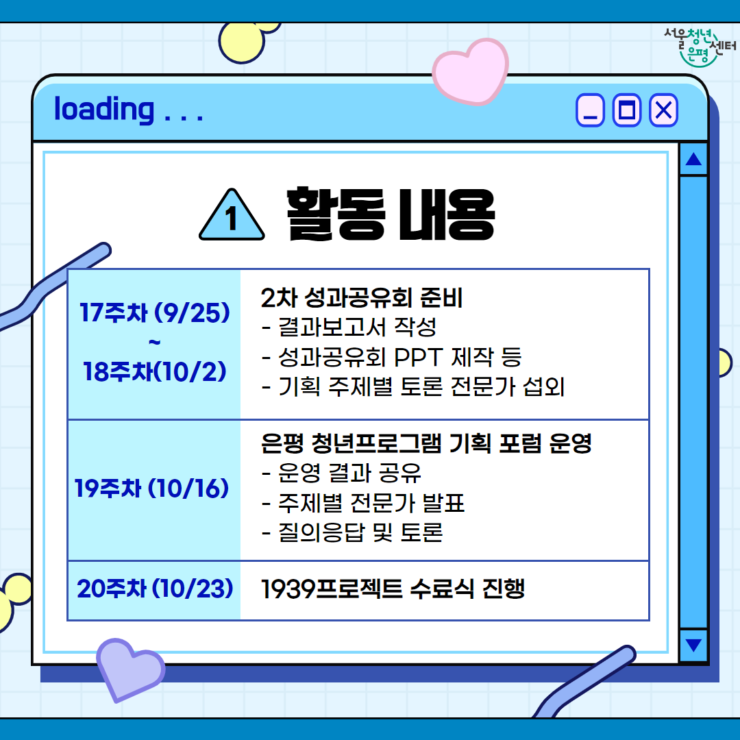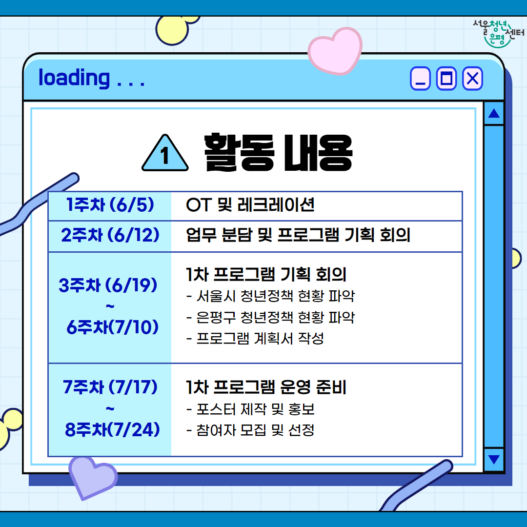 안녕하세요🙌 서울청년센터 은평 동동매니저입니다:)