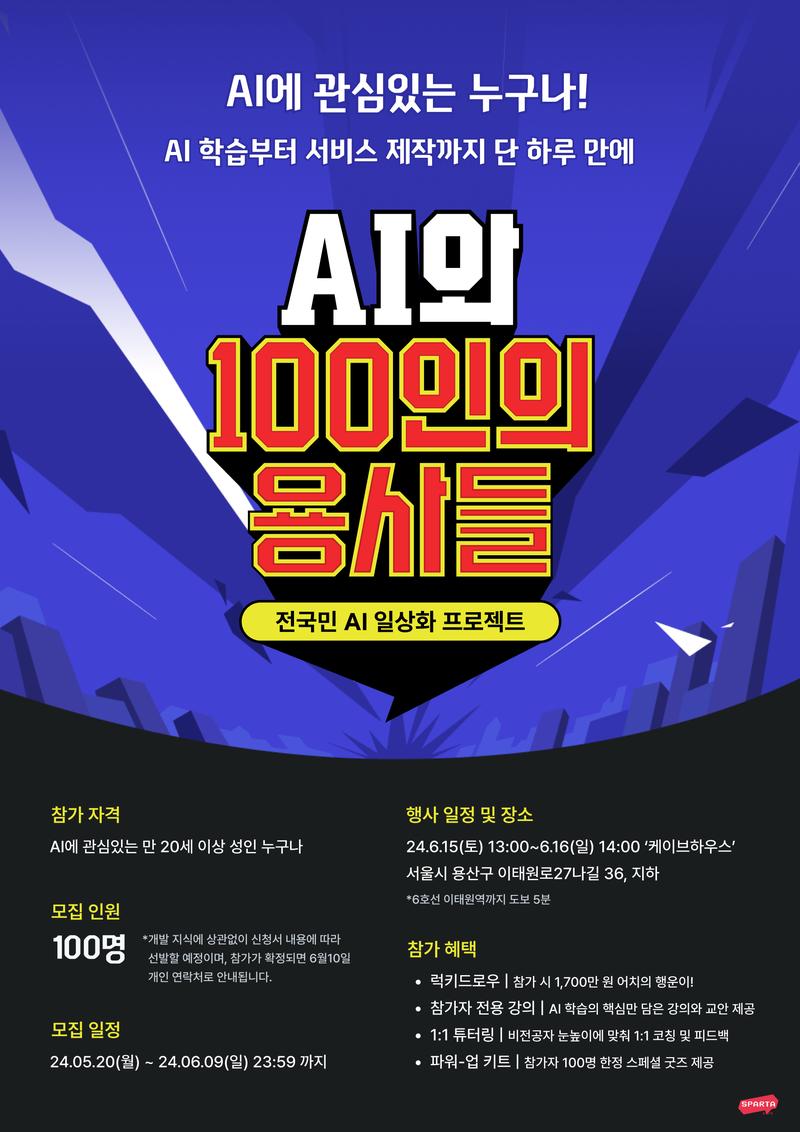 그런 분들을 위해 스파르타코딩클럽에서 준비한 AI 해커톤, <AI와 100인의 용사들>을 소개합니다!