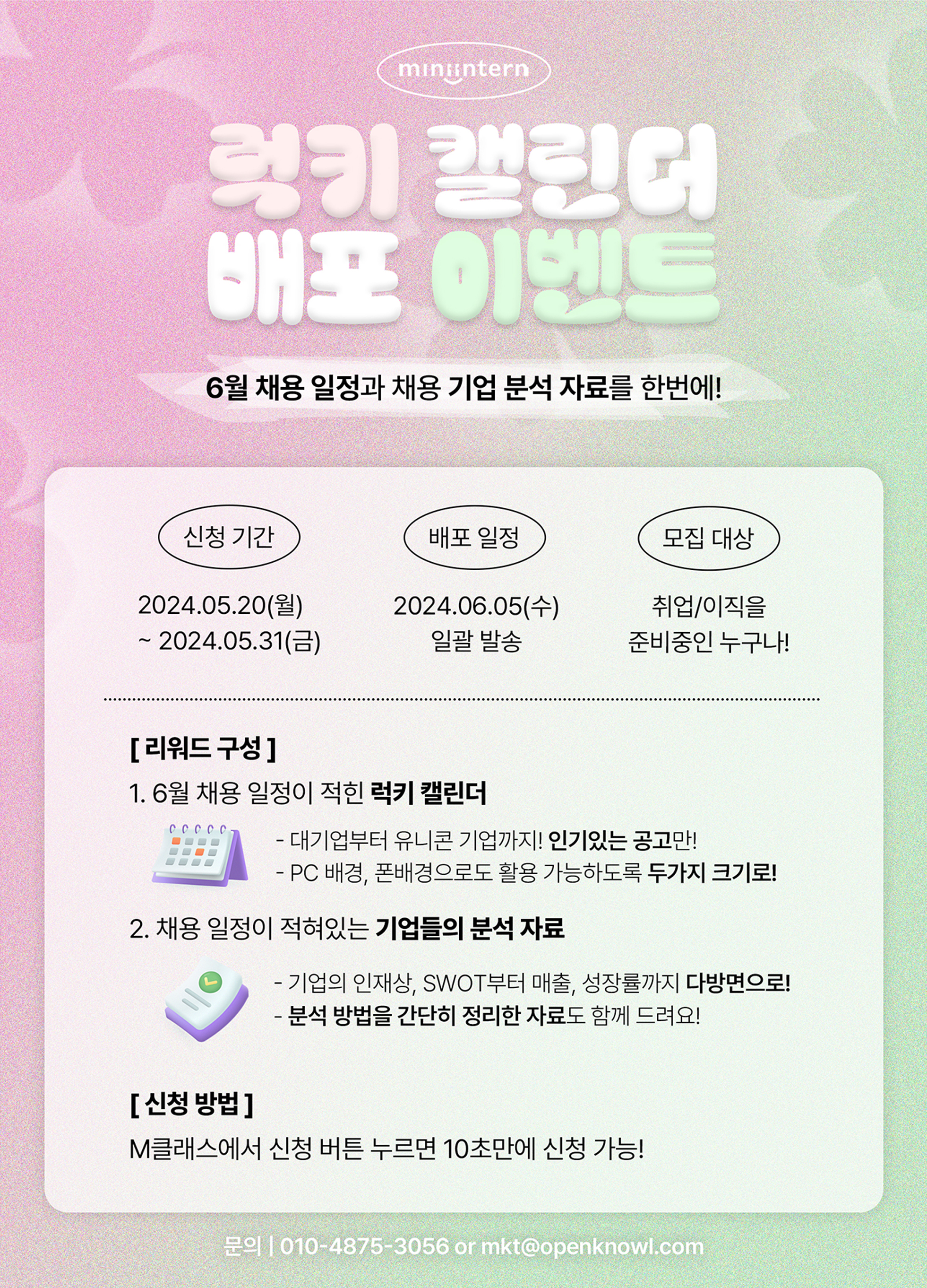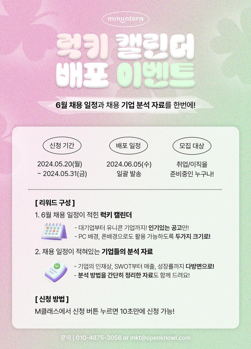 채용 공고와 기업 분석을 한 번에! 6월 럭키 캘린더 무료 배포 이벤트 (~5/31)