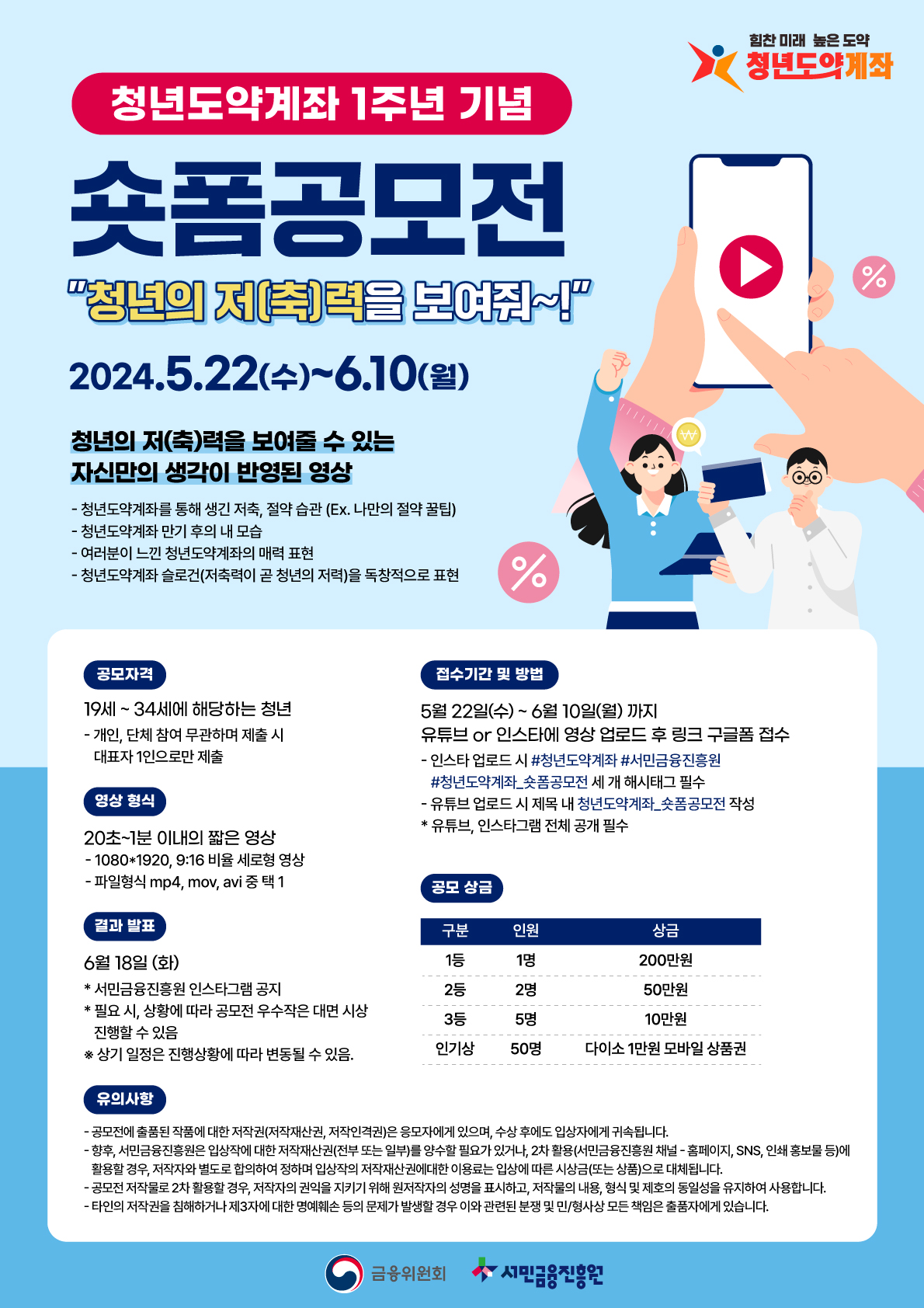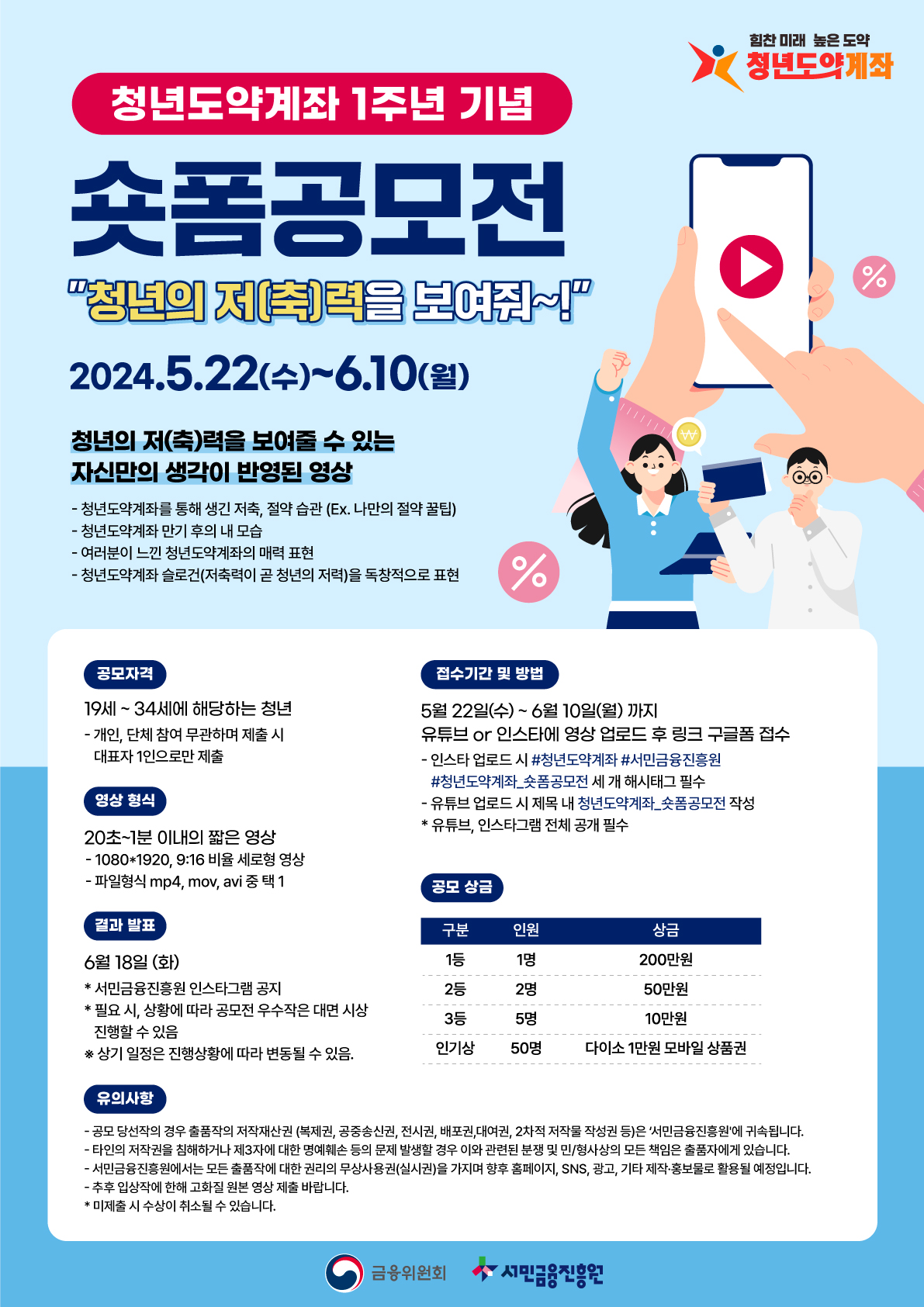 청년도약계좌 1주년 기념 🎬 영상 #숏품공모전 을 개최합니다! 👏