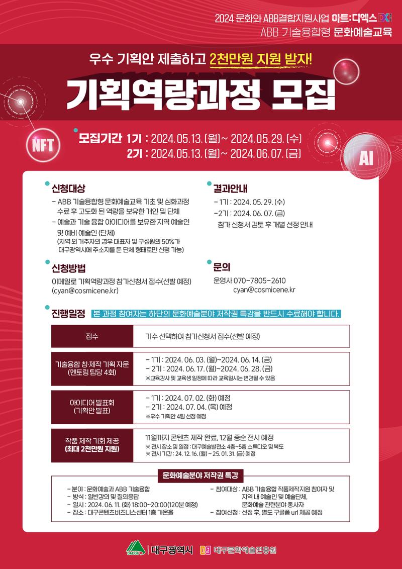 융합기술에 관심 있는 대구 예술인 주목!