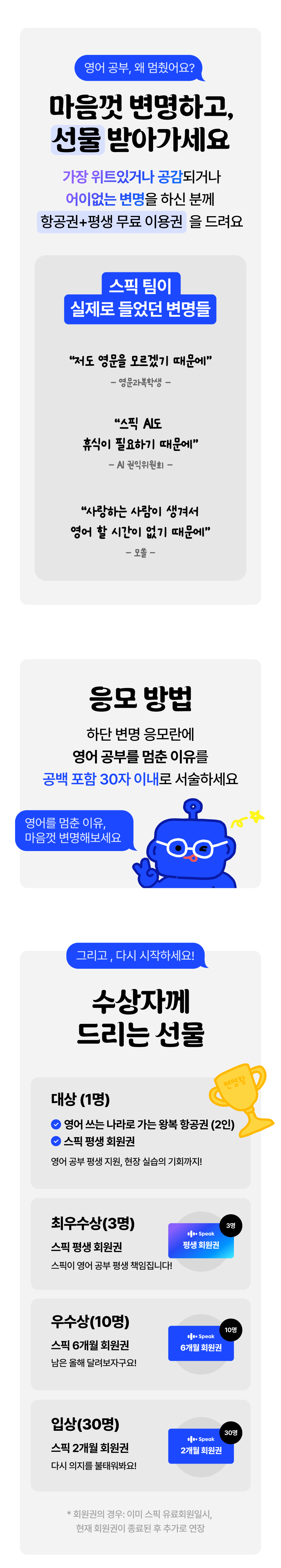 스픽이 제 1회 <천하제일 변명대회>를 개최합니다.