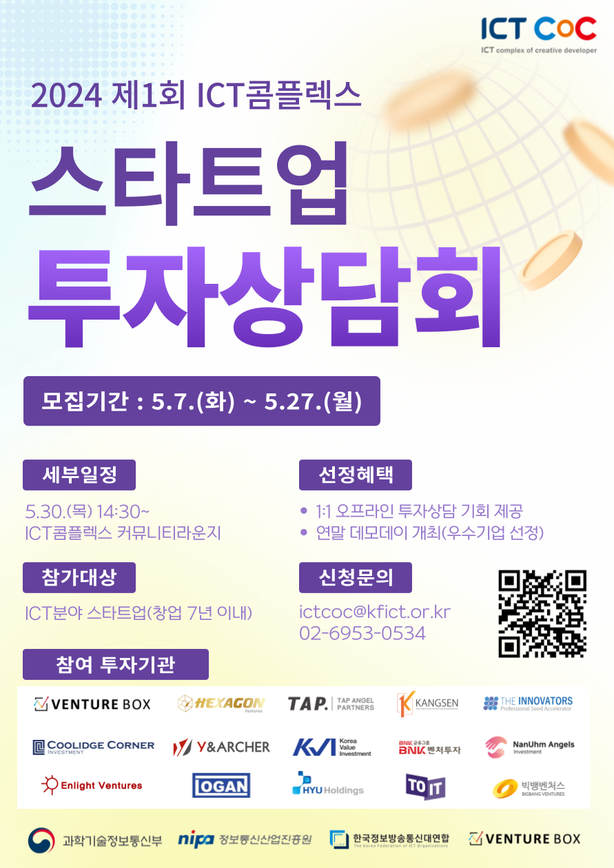 [2024년 제1회 ICT콤플렉스 스타트업 투자상담회 참가기업 모집]
