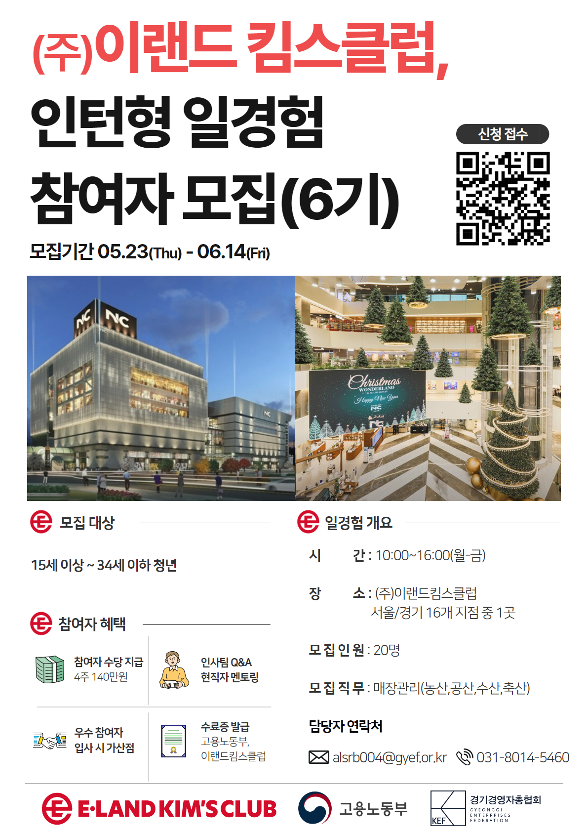 장소 : (주)이랜드킴스클럽 서울/경기 16개 지점(참여자 희망 지점 우선 배치)
