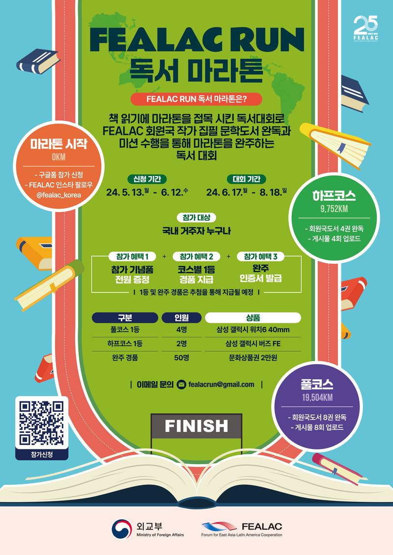 FEALAC 창설 25주년을 기념하여 온라인 독서 마라톤인 FEALAC RUN을 진행합니다.