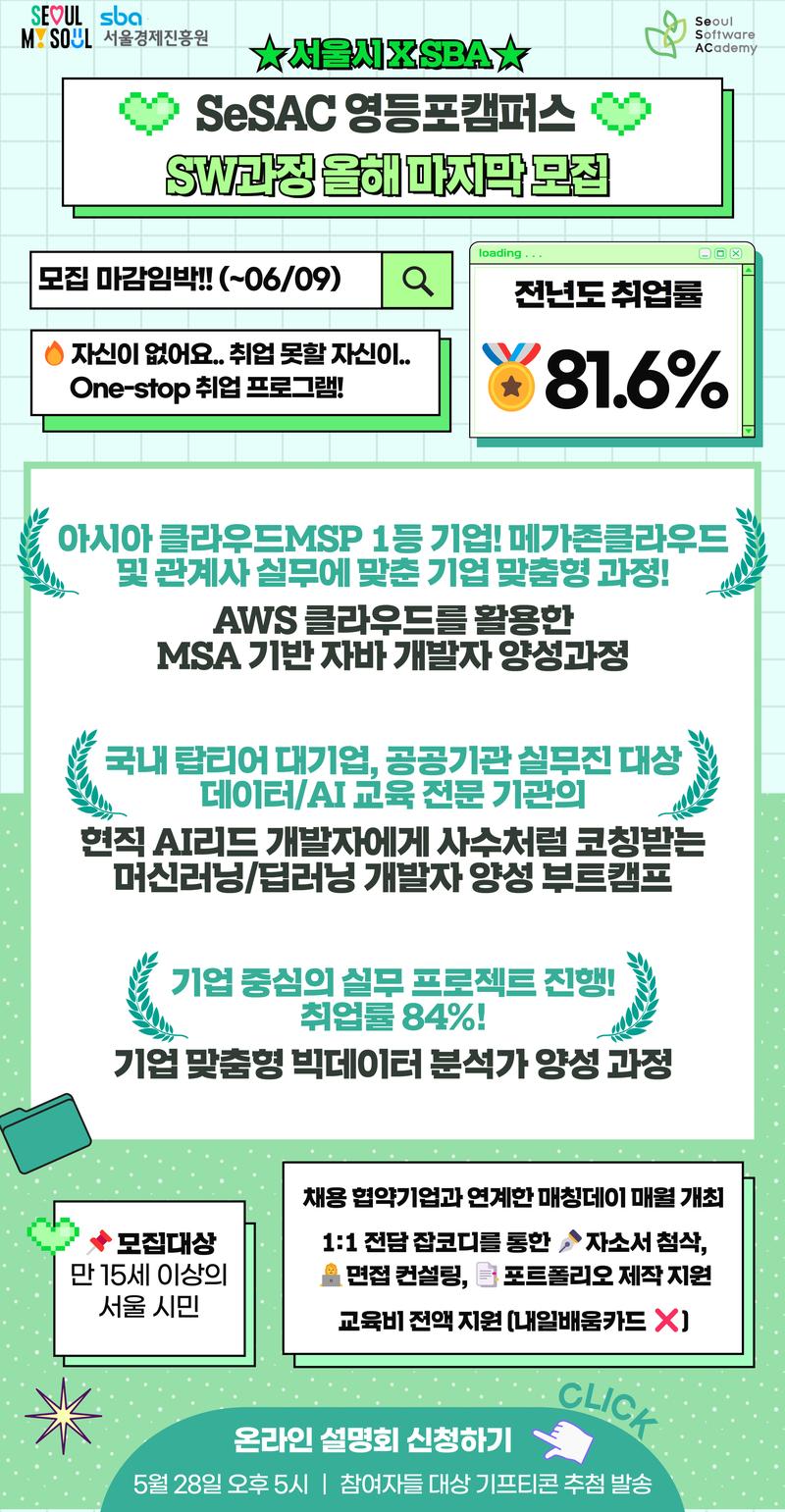 ◇ 전년도 취업률 81.6%, One-stop 취업 프로그램, 새싹에서 온라인 설명회를 개최합니다.