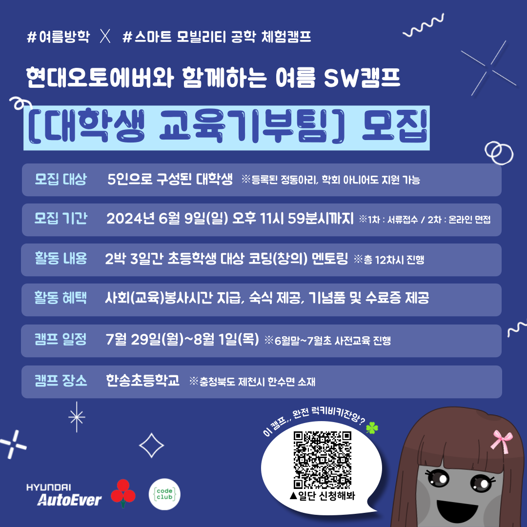 📢"2024 여름방학 현대오토에버와 함께하는 스마트 모빌리티 공학 체험캠프를 통해