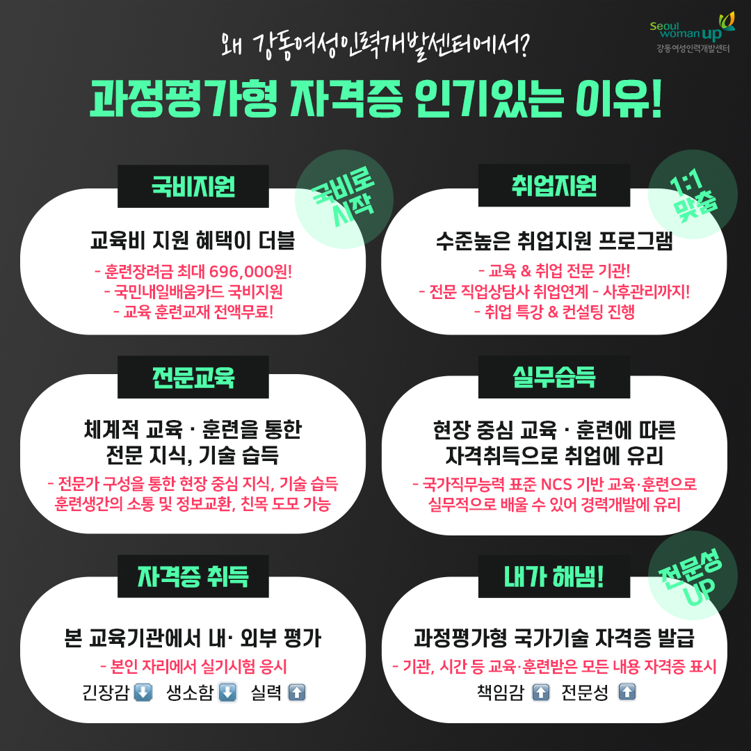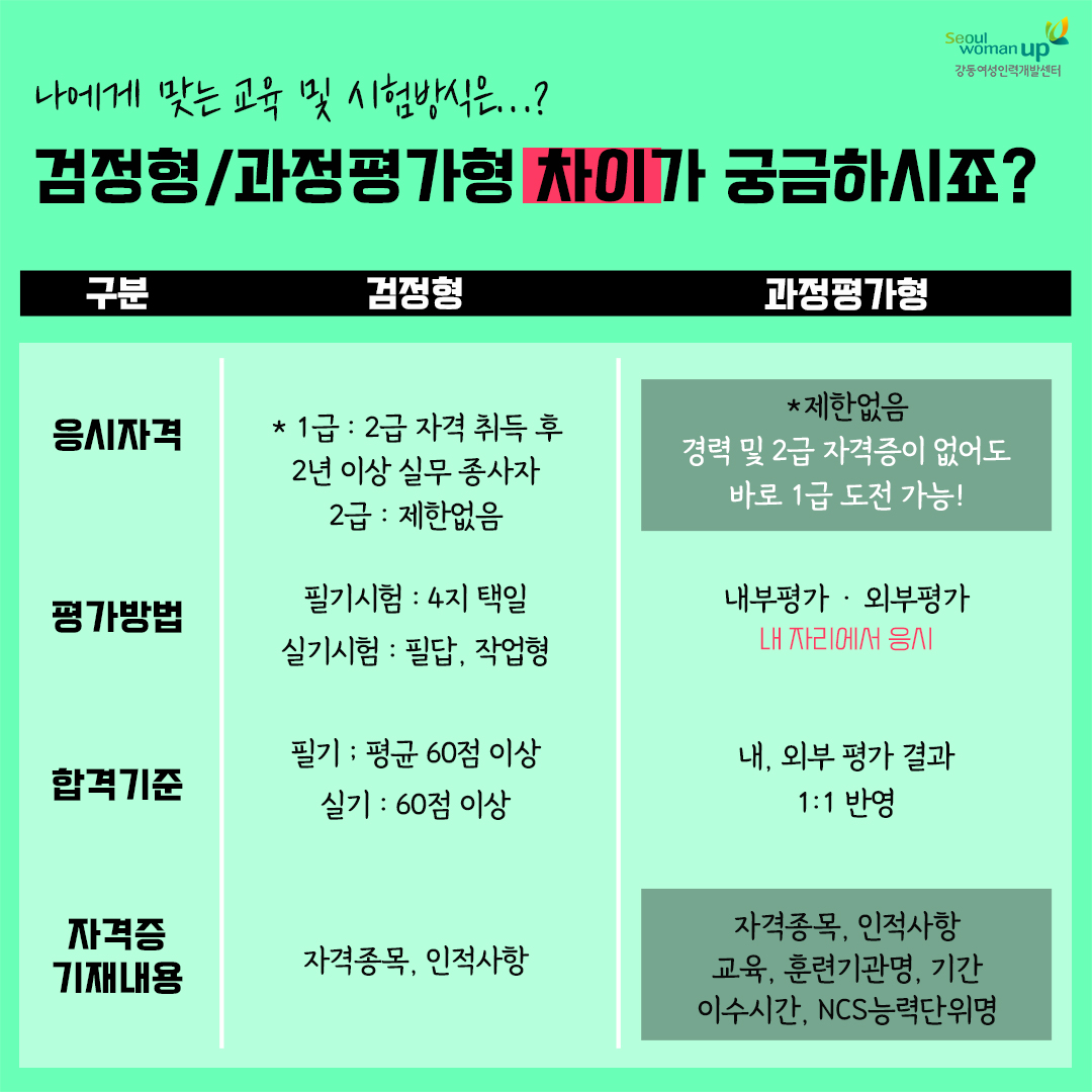 👉 과정평가형 1급 서울 4곳만 진행! 서울 동부권 / 강남권 유일 진행!
