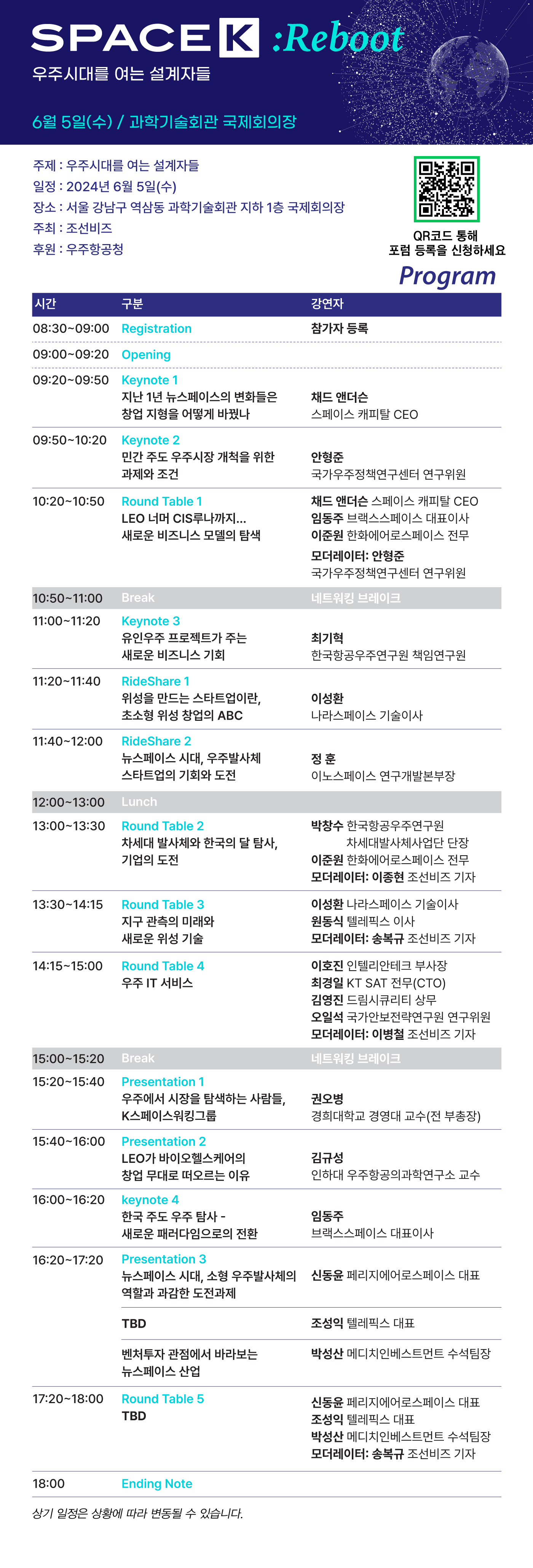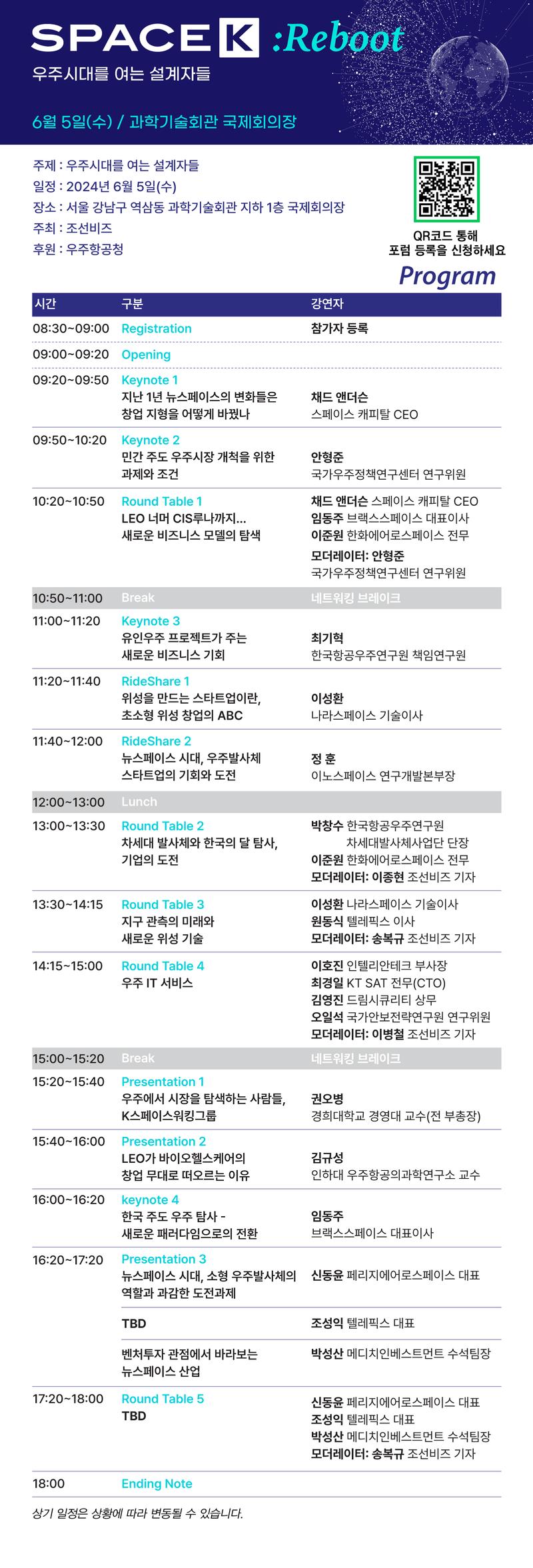 신청하기: https://e.chosunbiz.com/tc-events/2024-%ec%8a%a4%ed%8e%98%ec%9d%b4%ec%8a%a4-k-reboot/