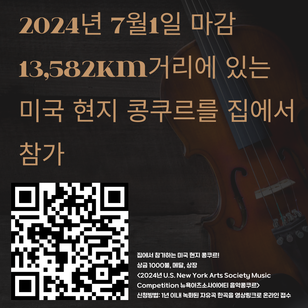 <2024년 U.S. New York Arts Society Music Competition 뉴욕아츠소사이어티 음악콩쿠르> 가 2024년 7월 1일 마감 됩니다.