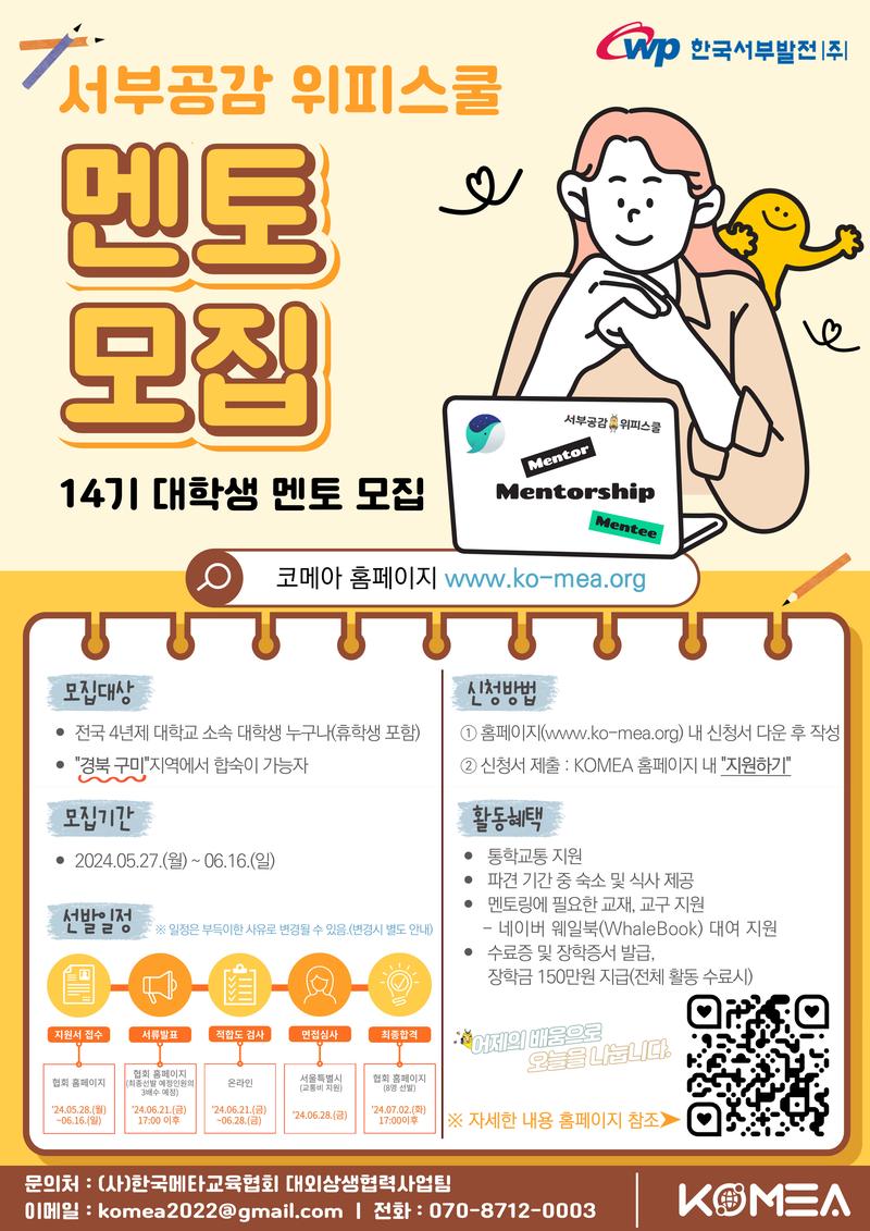 o 모집구분 : “2024년도 서부공감 위피스쿨 14기” 대학생 멘토 모집