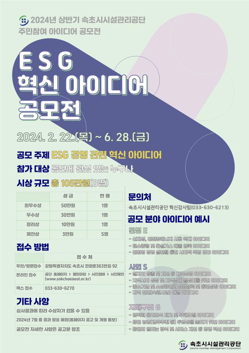2024년 상반기 속초시시설관리공단 ESG 혁신아이디어 공모전