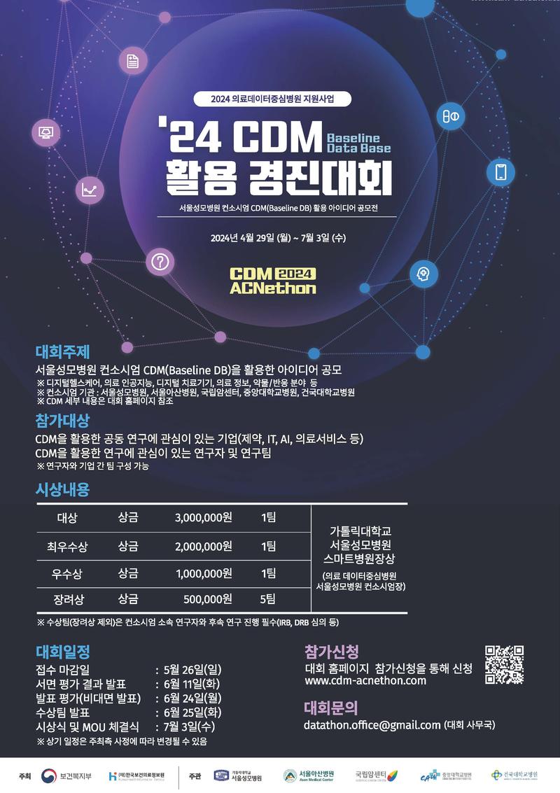 <2024 서울 성모병원 컨소시엄 CDM(Baseline DB) 활용 아이디어 공모전>
