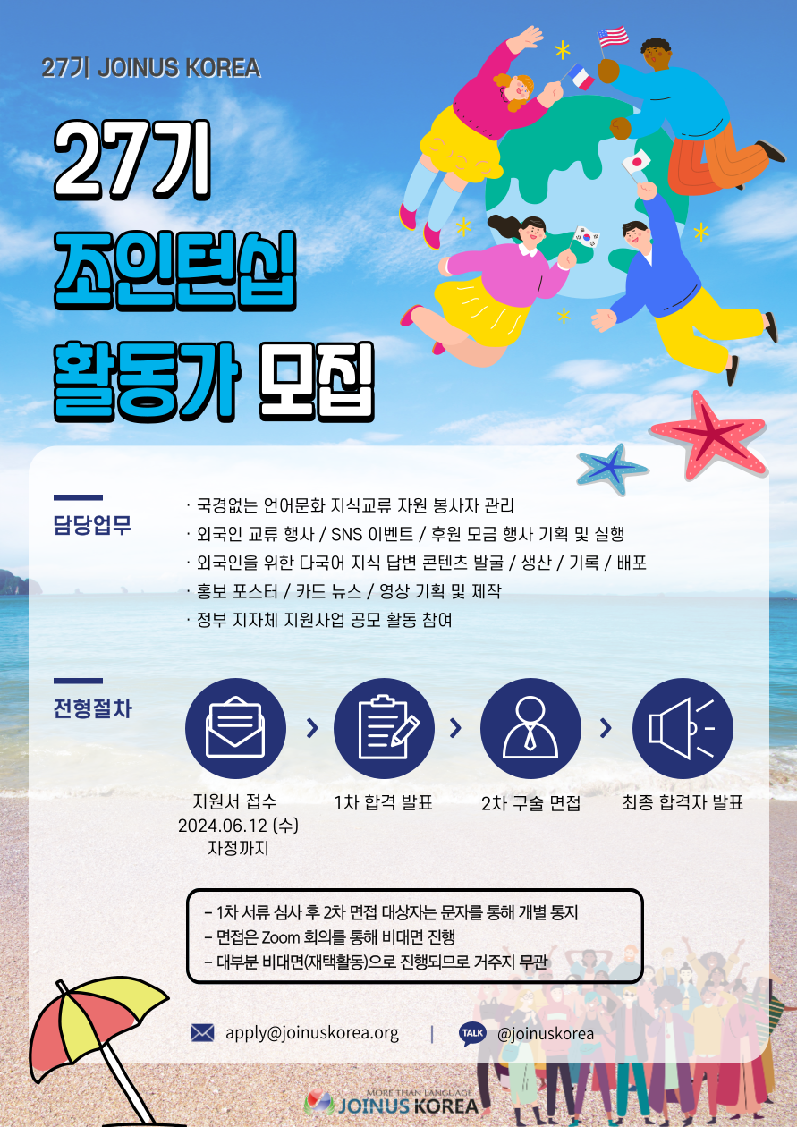 · 모집 공고 및 지원서 접수 : 2024.06.12(수)자정까지