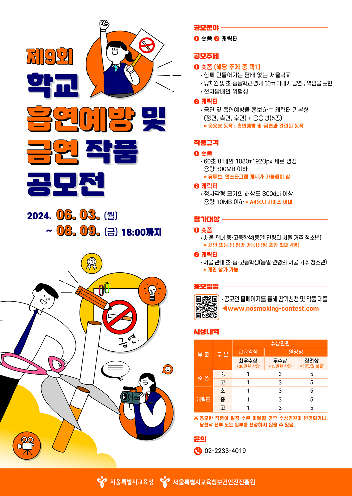 ※ 수상작은 서울시교육청 및 보건안전진흥원 전시회, 캠페인, 흡연예방 및 금연 홍보물‧교구 제작 등 2차 가공을 포함하여 활용 예정