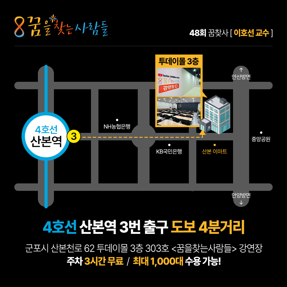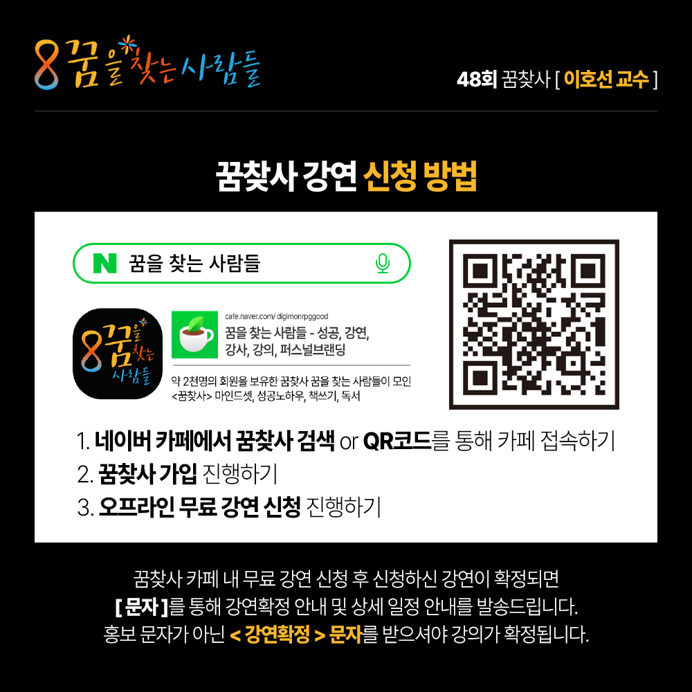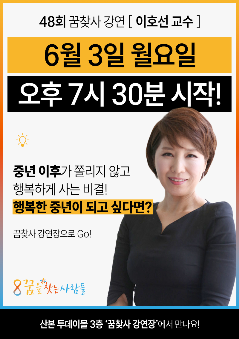 강연은 6월 3일 월요일 오후 7시 30분 꿈찾사 강연장에서 시작합니다!