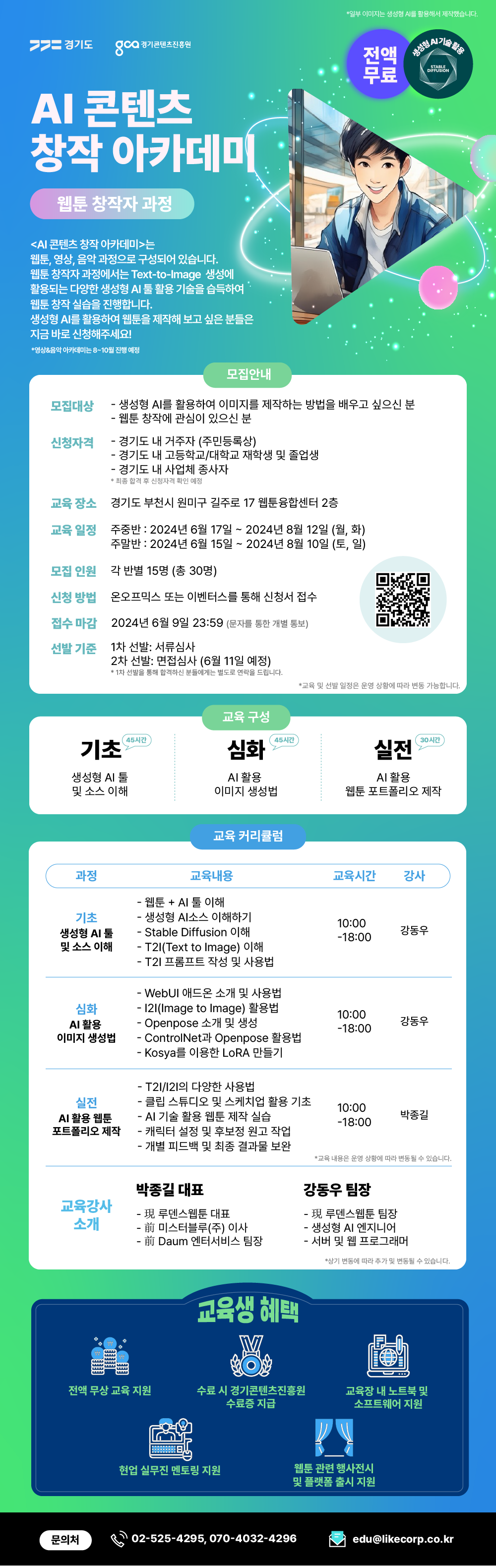 - 신청서 다운로드 : 000_참가지원서_2024_AI_콘텐츠_창작_아카데미(웹툰).hwp (104.004 KiB)