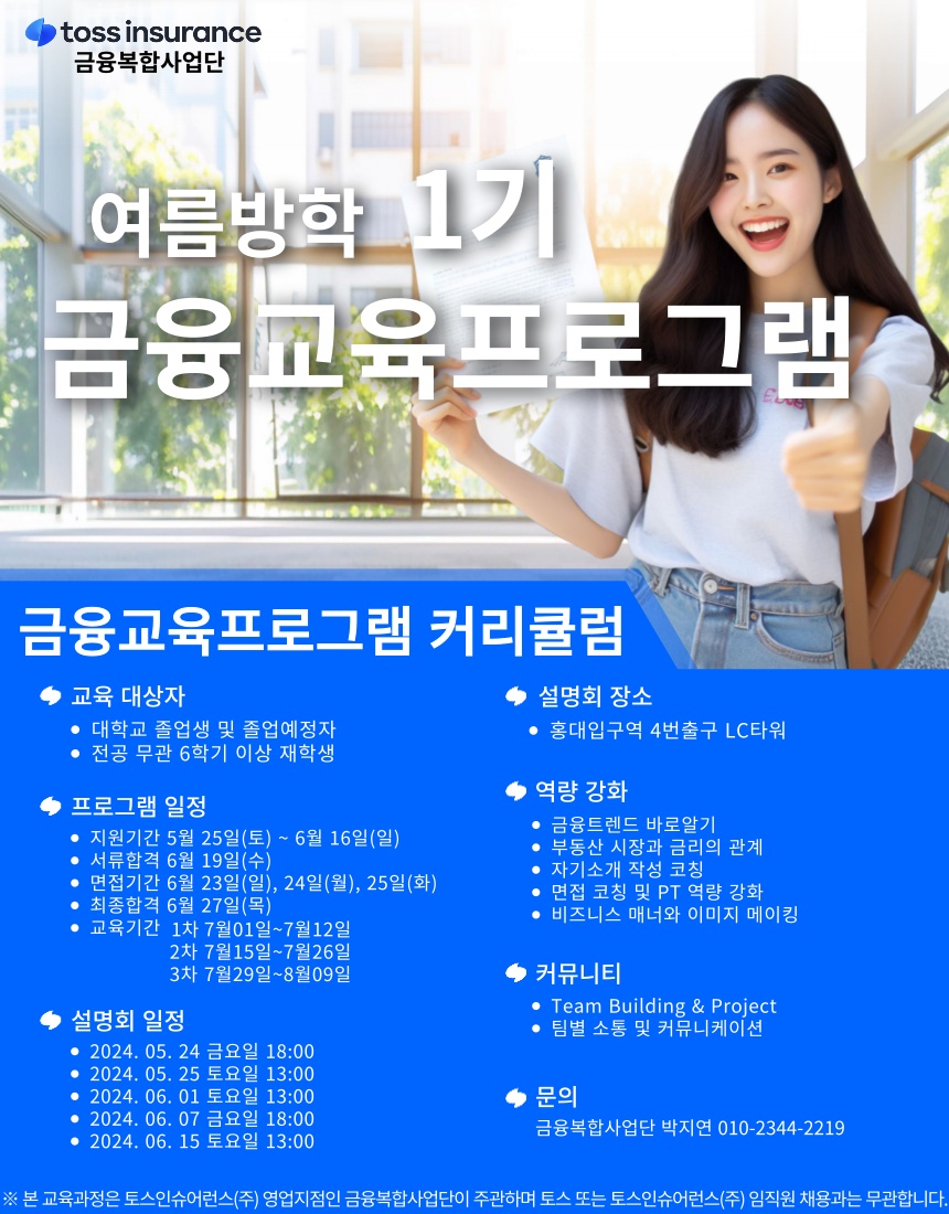 *** 문의 : 토스인슈어런스 금융복합사업단 금융교육 담당자 박지연 010.2344.2219