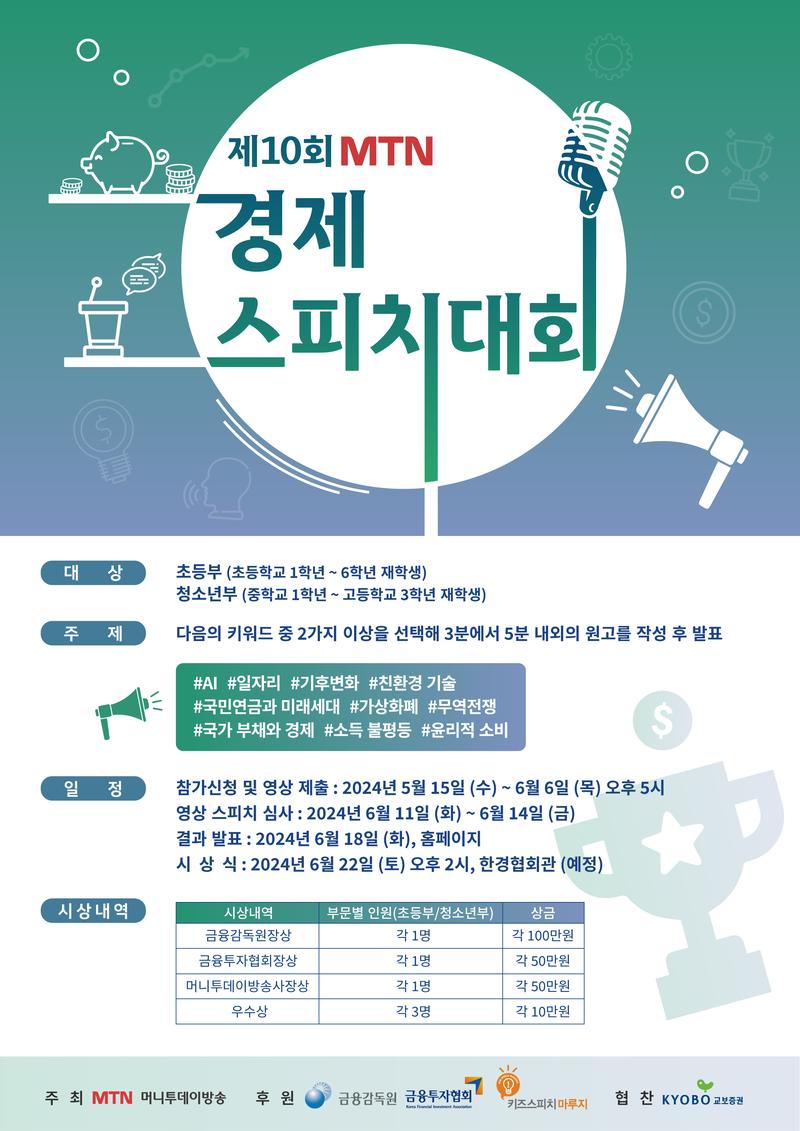 초·중·고등학생을 대상으로 청소년들의 경제, 금융에 대한 이해를 돕고 스피치를 통해 자신감과 표현 능력을 키워주기 위한 스피치 경연 대회
