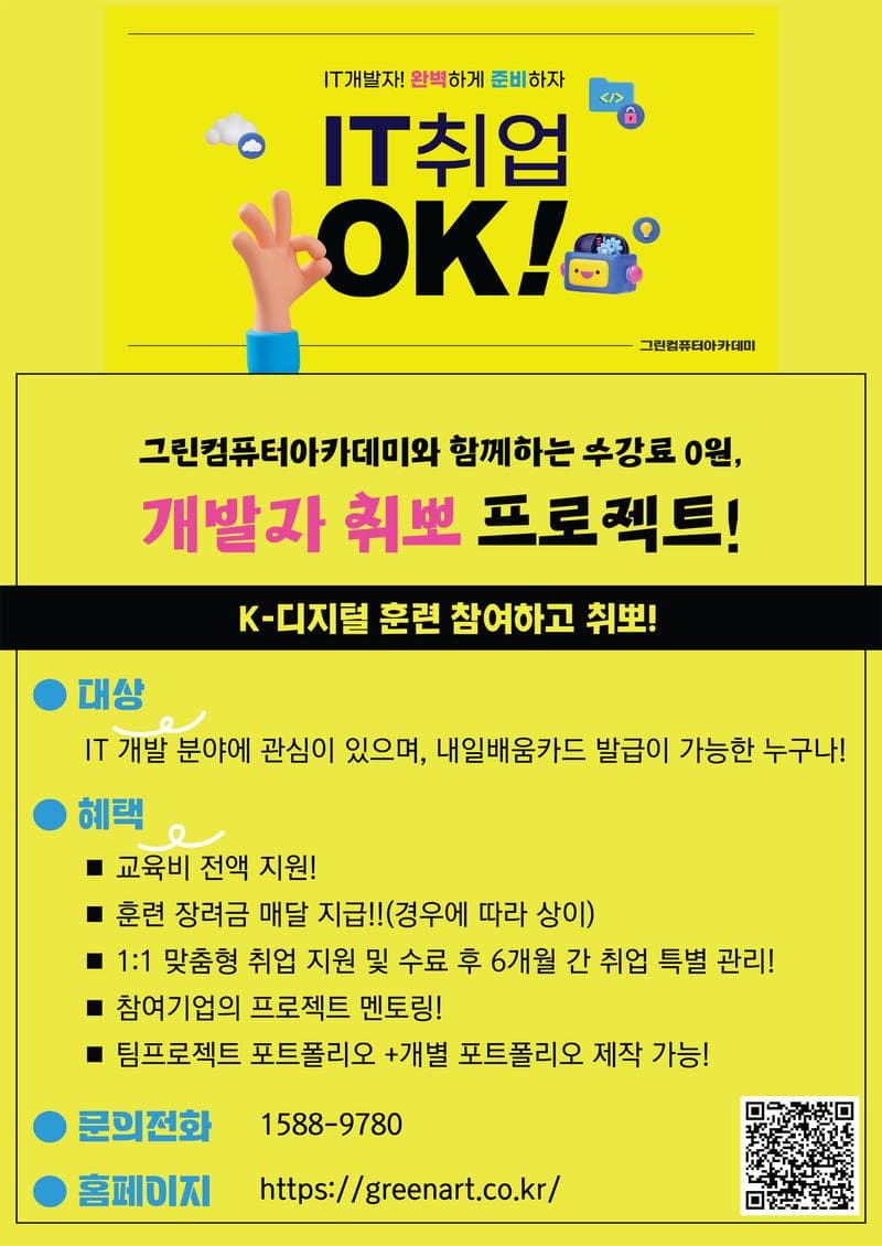 📢 IT학원을 찾고 있었다면? 그린의 K-디지털 트레이닝!