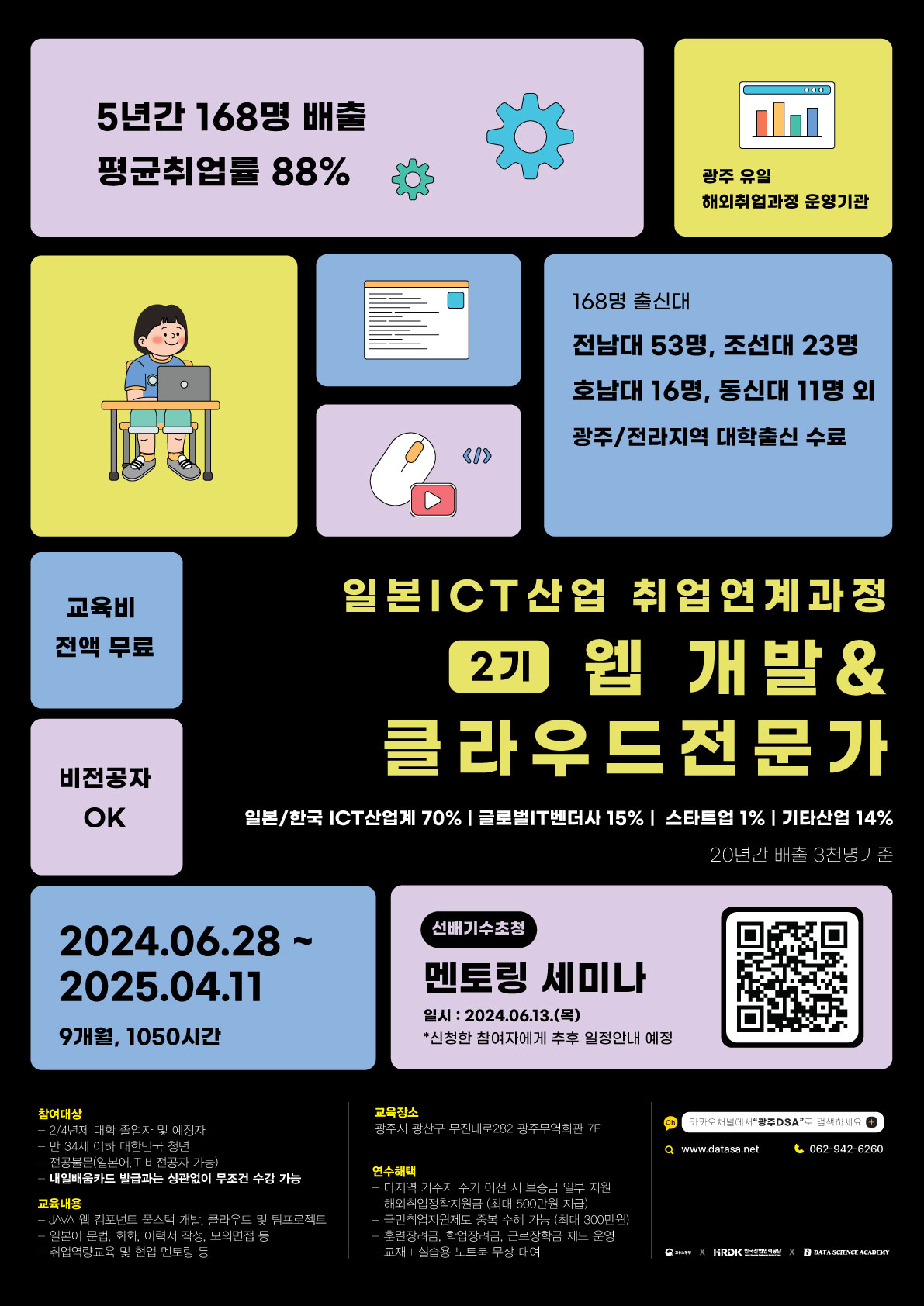 광주 웹 개발 클라우드 전문가 과정 과정이 6월 28일 시작합니다🎉