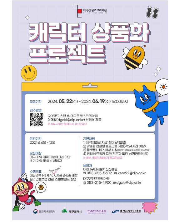 ■ 공 고 명 : 2024년 대구콘텐츠고리아랩 캐릭터 상품화 프로젝트