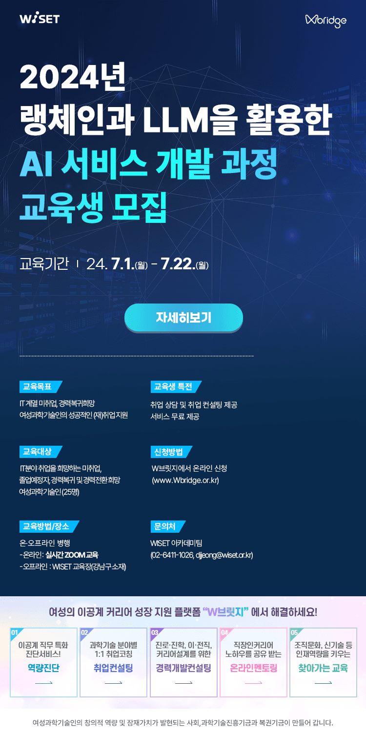 ※ 교육 > 집합 교육 >랭체인과 LLM을 활용한 AI 서비스 개발 과정 교육생 모집