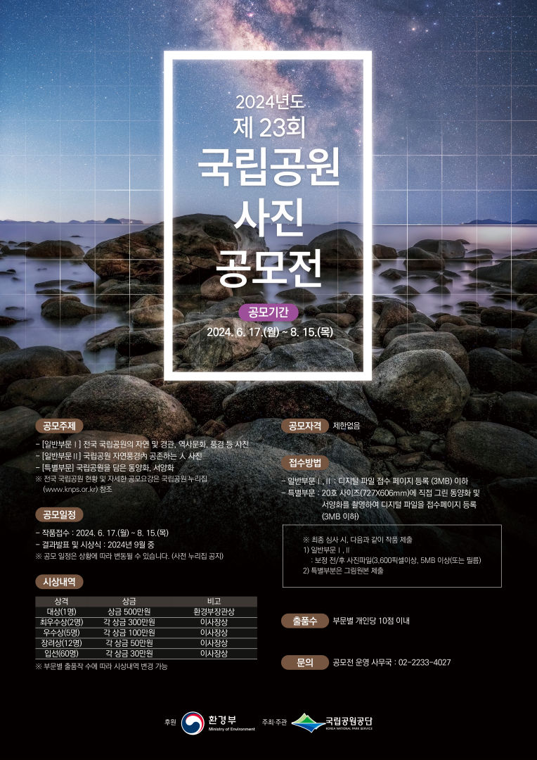 ○ 자세한 사항은 국립공원 사진 공모전 문의처(02-2233-4027)로 연락주시기 바랍니다.