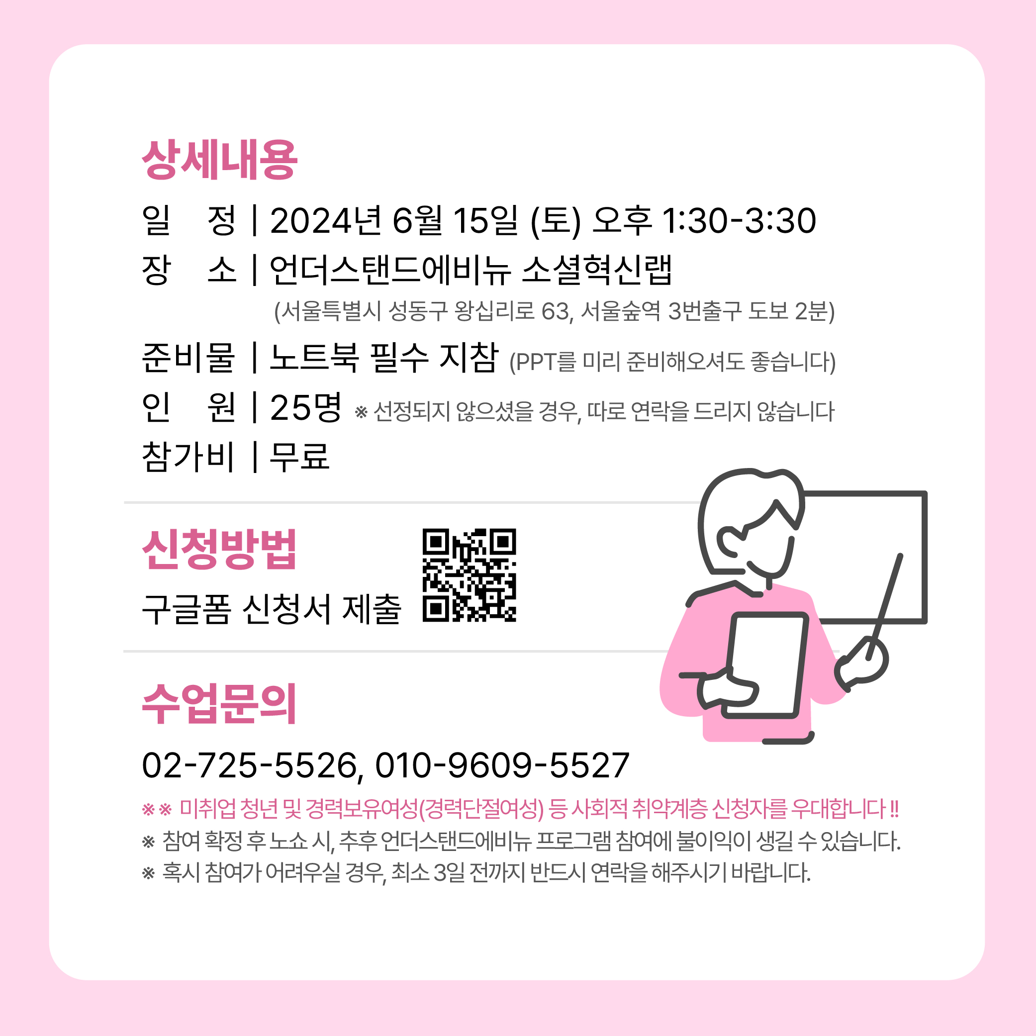 ☑️준비물: 노트북 필수 지참 💻 (PPT를 미리 준비해오셔도 좋습니다)