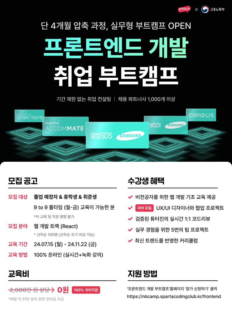 스파르타가 하면 다릅니다. 단 4개월 몰입으로, 비전공자도 취업 가능한 실무형 부트캠프!