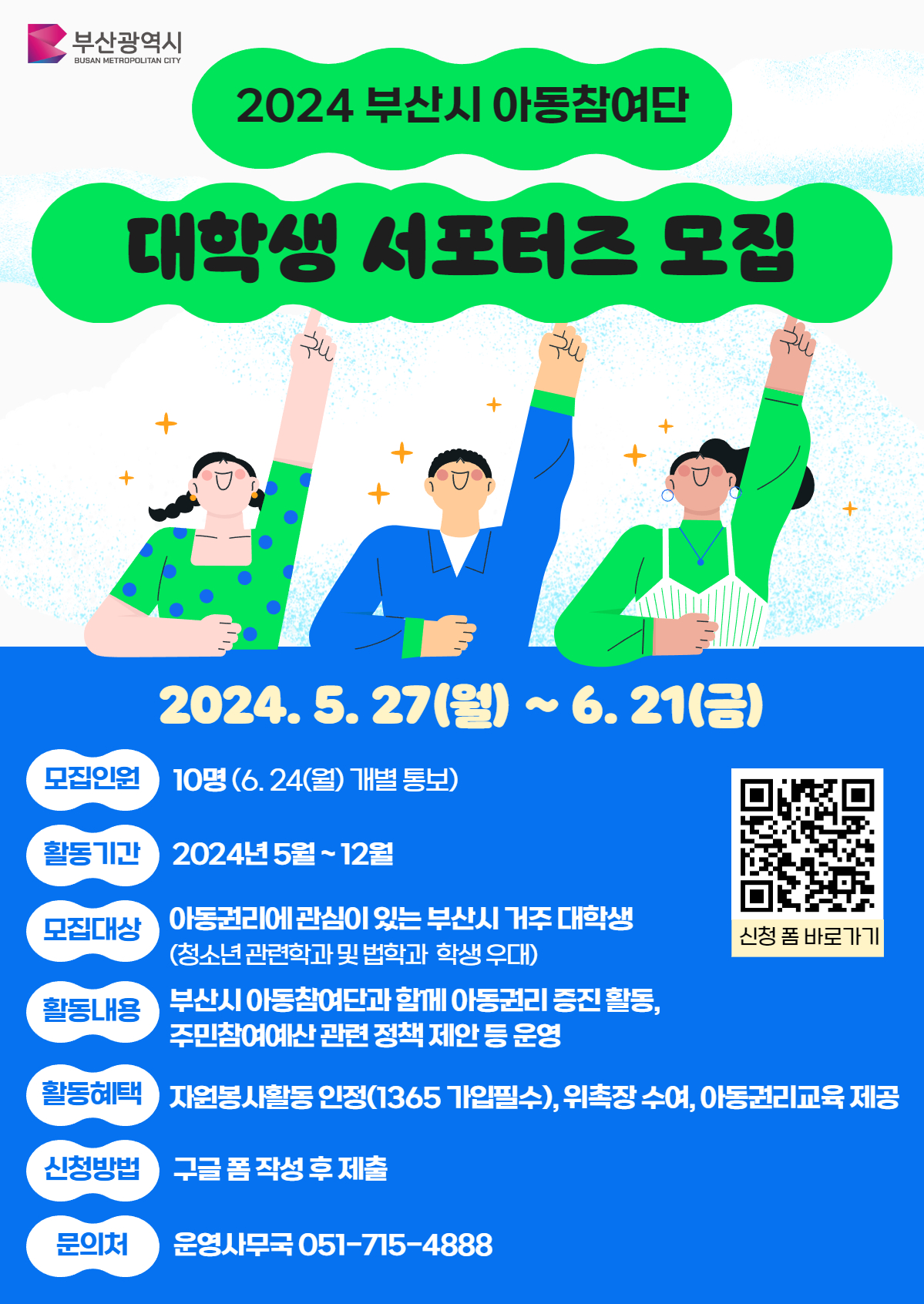 부산시 「2024 아동참여단」 대학생 서포터즈 모집 - Google Forms