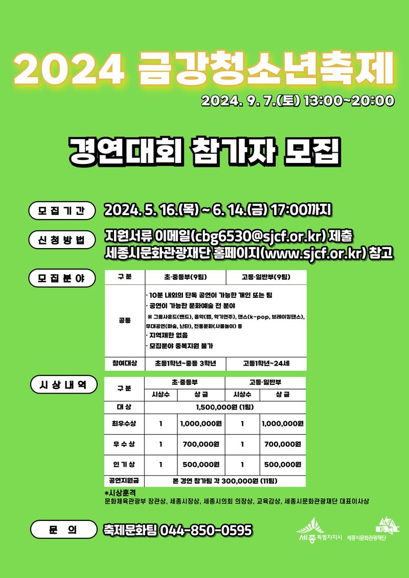 ✨2024 금강청소년축제 경연대회 참가자 모집✨