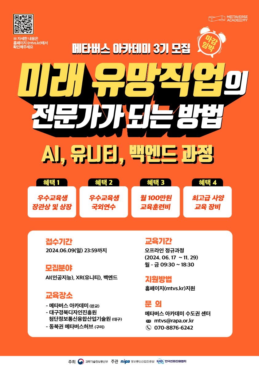 과학기술정보통신부 주최, 청년인재 양성사업 [메타버스 아카데미] 3기 모집