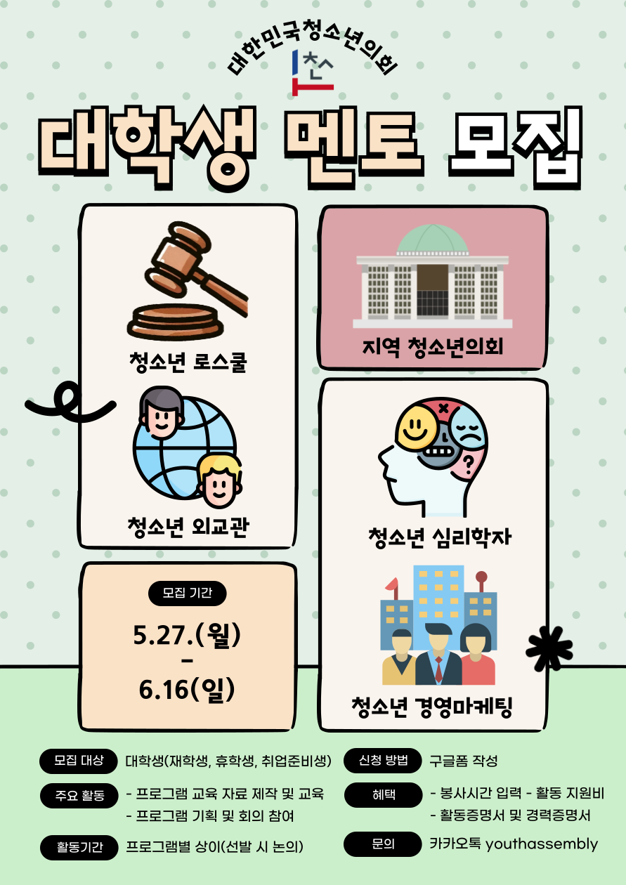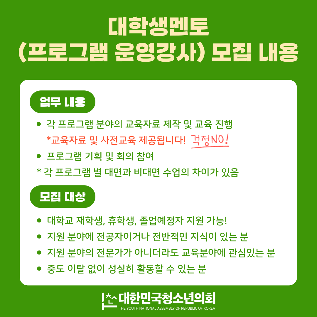 👨🏫대한민국청소년의회 대학생 멘토(프로그램 운영강사) 공개 모집👩🏫