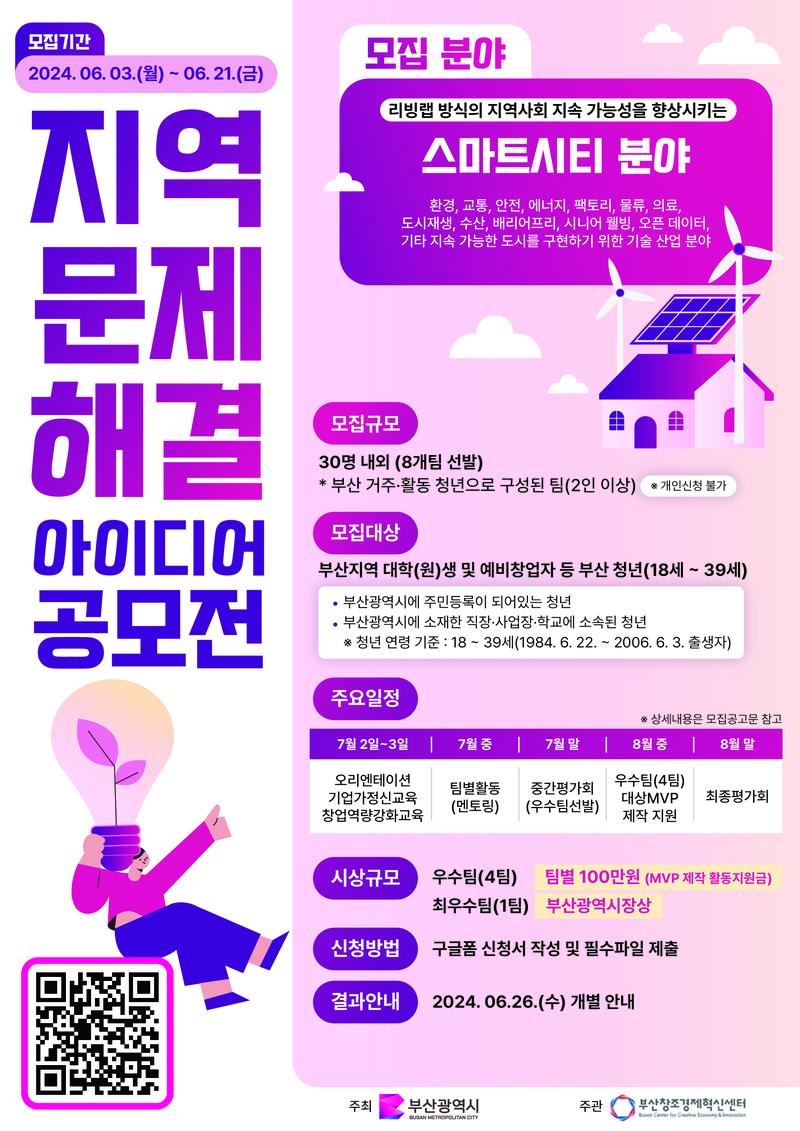부산 청년이 주도하는 리빙랩 『지역문제 해결 아이디어 공모전』이 돌아왔습니다!! 참가자를 위한 다양한 활동 혜택이 기다리고 있으며, 미래 부산 스마트시티를 이끌 청년창업가를 발굴하기 위해 유익한 콘텐츠를 마련하였으니, 많은 관심 부탁드립니다! 🥰
