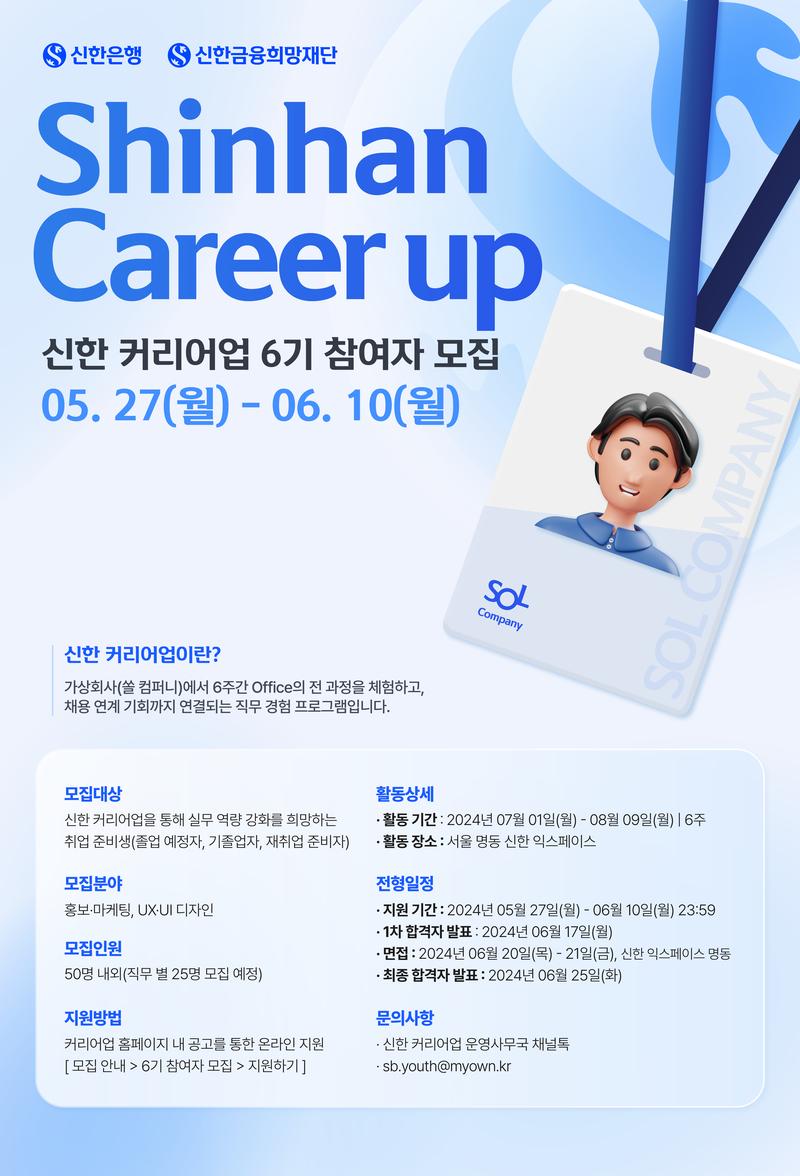 [신한은행/신한금융희망재단] 신한 커리어업 6기 참가자 모집 (~6/10)