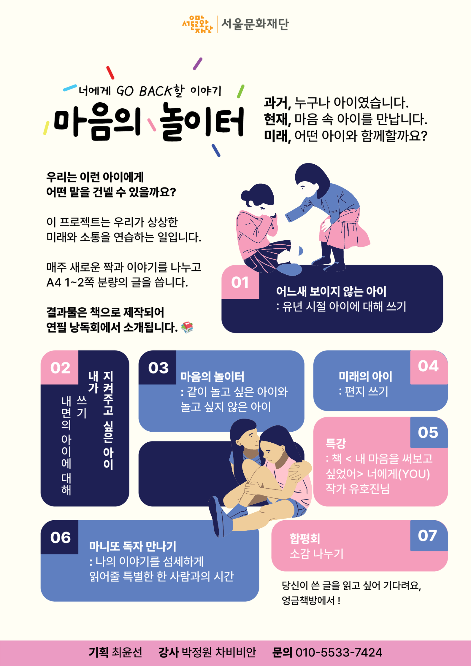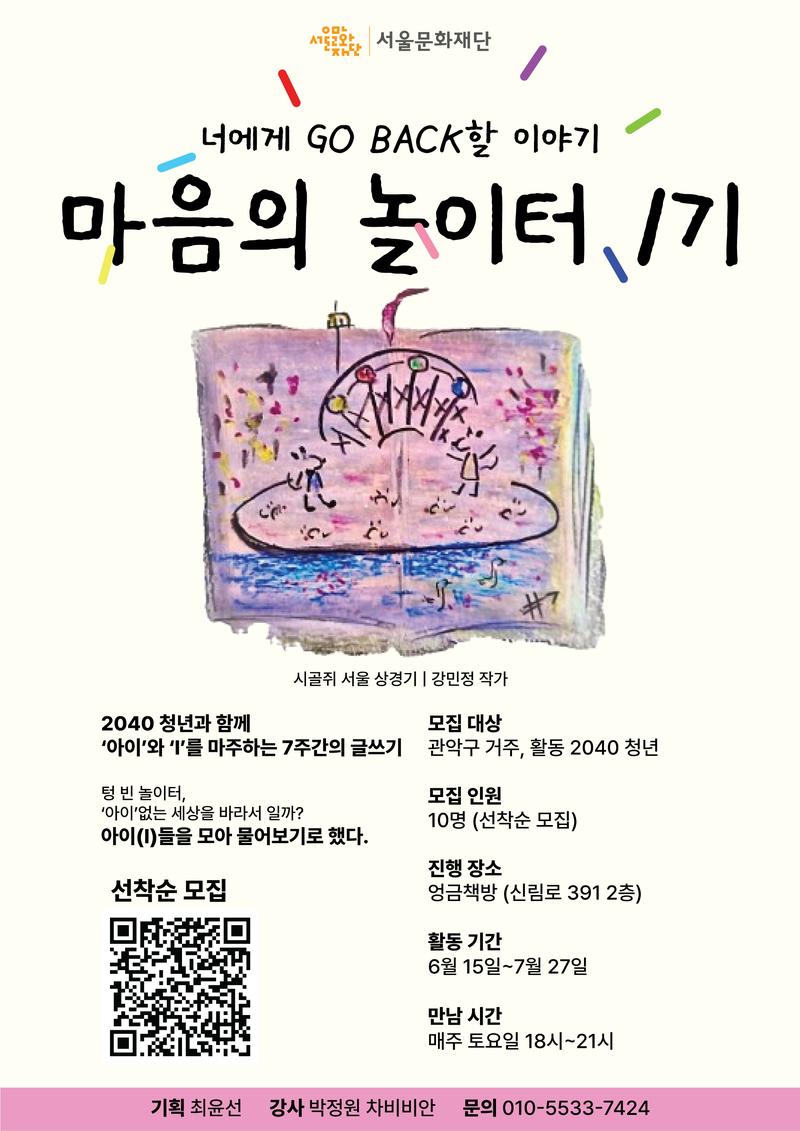 2040 청년들이 ‘아이’를 소재로 자신을 타자화하여 결국 ‘I’에 닿는 글을 쓰는 약 7주간의 문학 창작 활동입니다.