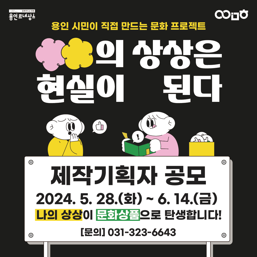 (재)용인문화재단 문화도시팀에서는 문화로 다채로운 지역을 만들어가기 위해 시민의 상상을 문화 프로젝트로 실현하는 2024 <○○의 상상은 현실이 된다> 사업을 운영 중입니다.