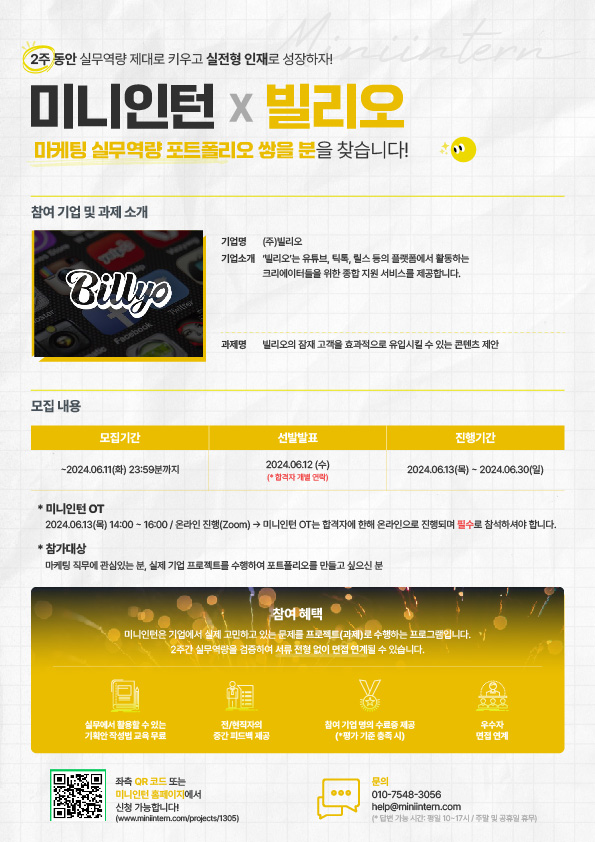 - 미니인턴 신청: https://bit.ly/3yMwS9y