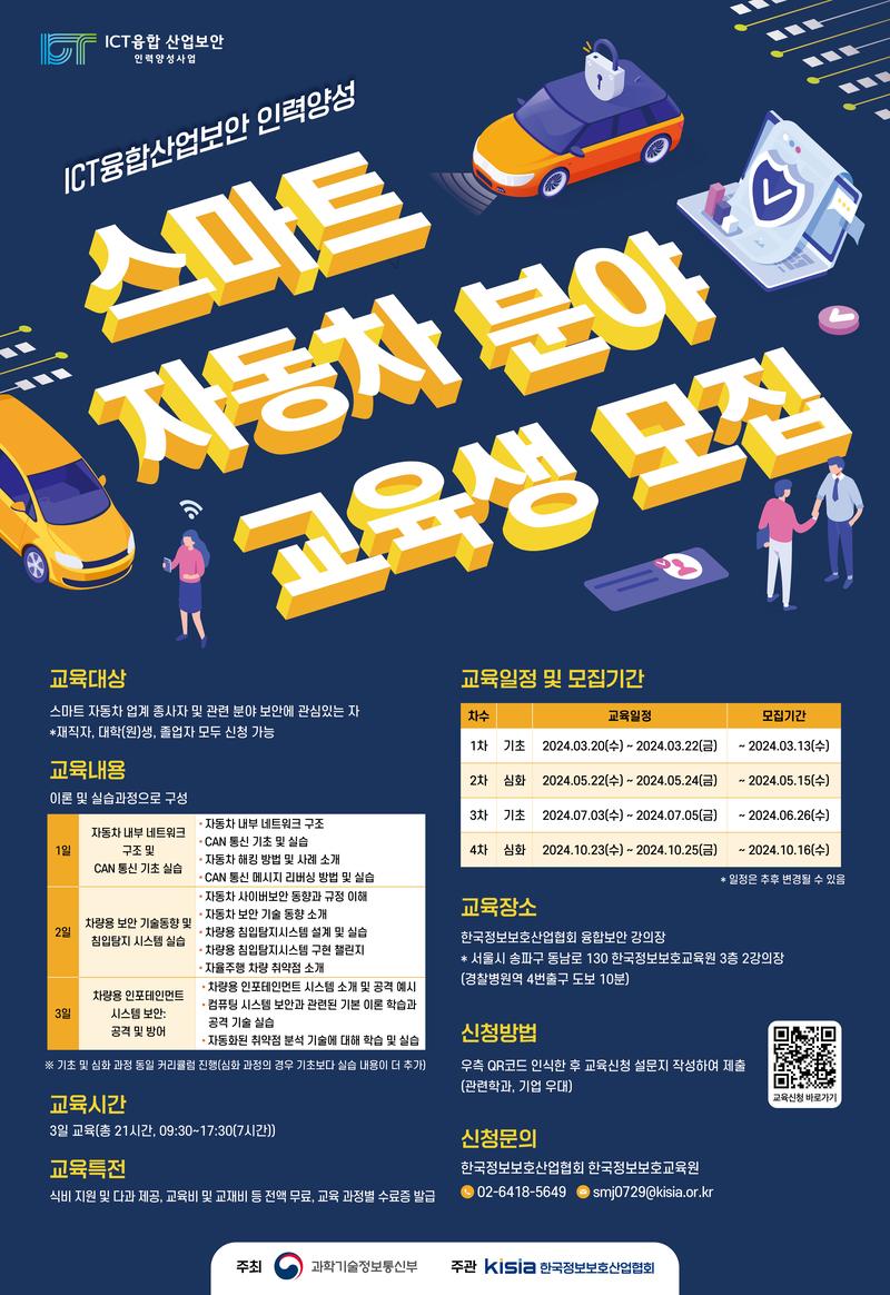 ICT융합산업보안 인력양성사업 스마트 자동차 분야 교육생을 모집합니다.