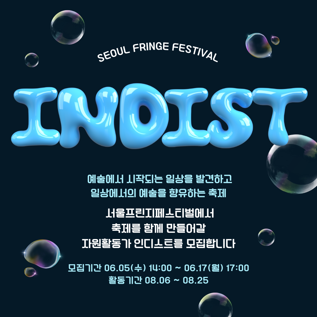 '서울프린지페스티벌2024'를 함께 만들어 갈 가장 주체적이고 독립적인 자원활동가 '인디스트'를 모집합니다!