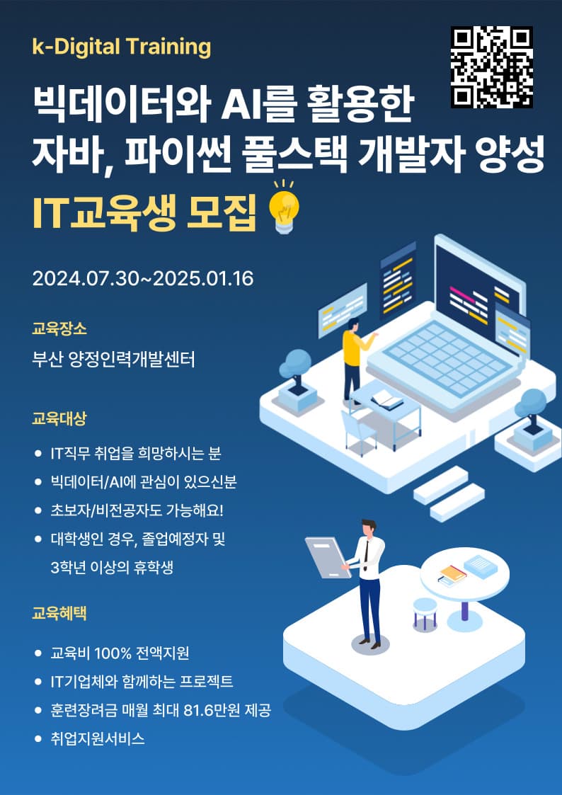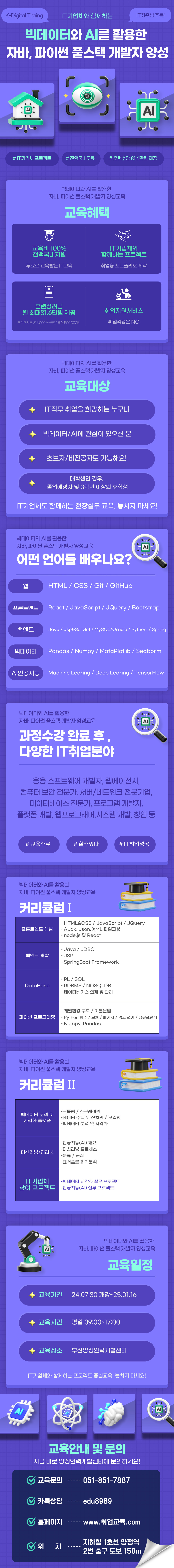 - 교육명 : 빅데이터와 AI를 활용한 자바, 파이썬 풀스택 개발자