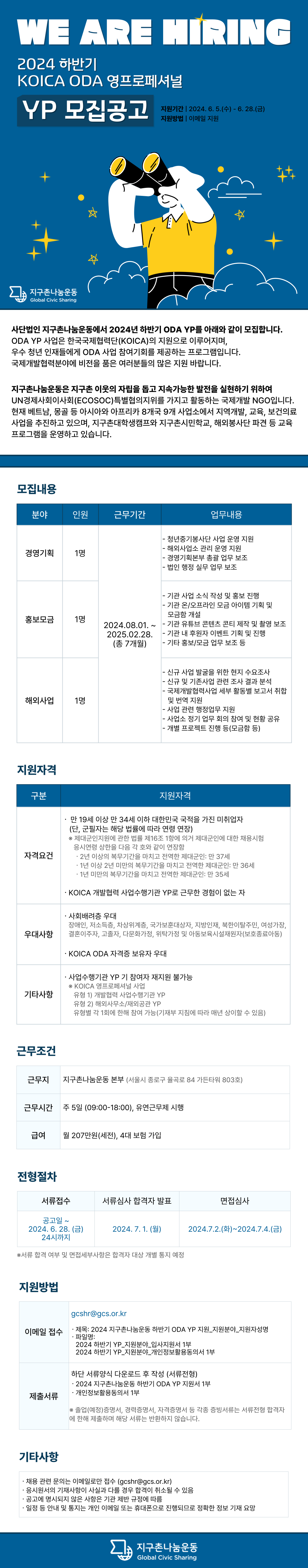 모집인원: 경영기획, 홍보모금, 해외사업 총 3명