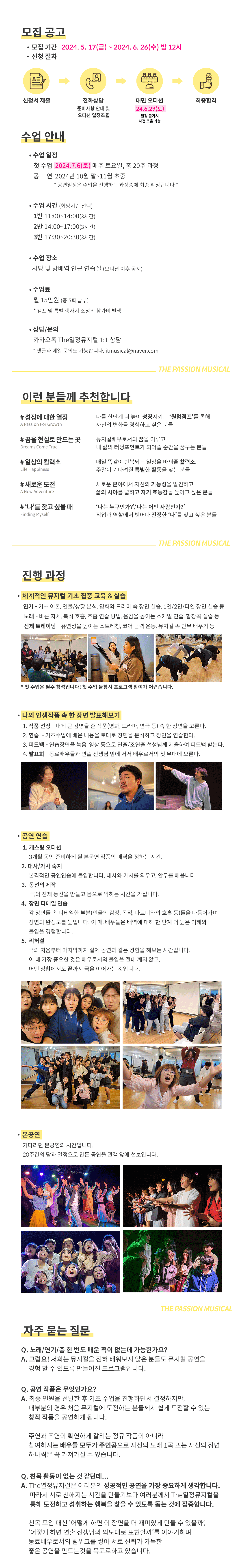 The열정 뮤지컬은 여러분들을 위한 무대를 만들어 놓고 기다리겠습니다😊