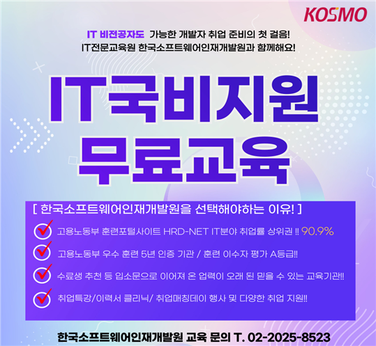 [고용노동부/한국소프트웨어인재개발원] 전액 국비지원 IT무료교육! 취업 맞춤형 무료 교육 받고 개발자로 취업하자!