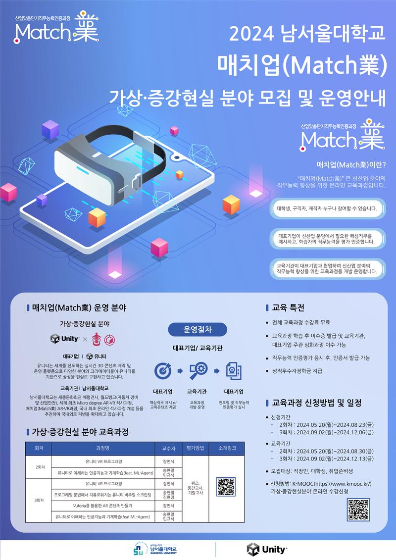 산업맞춤 단기직무능력인증과정 가상·증강현실과정 수강생을 모집합니다. K-MOOC 플랫폼에서 대학생, 구직자, 재직자 누구나 참여할 수 있습니다. 많은 참여 바랍니다.